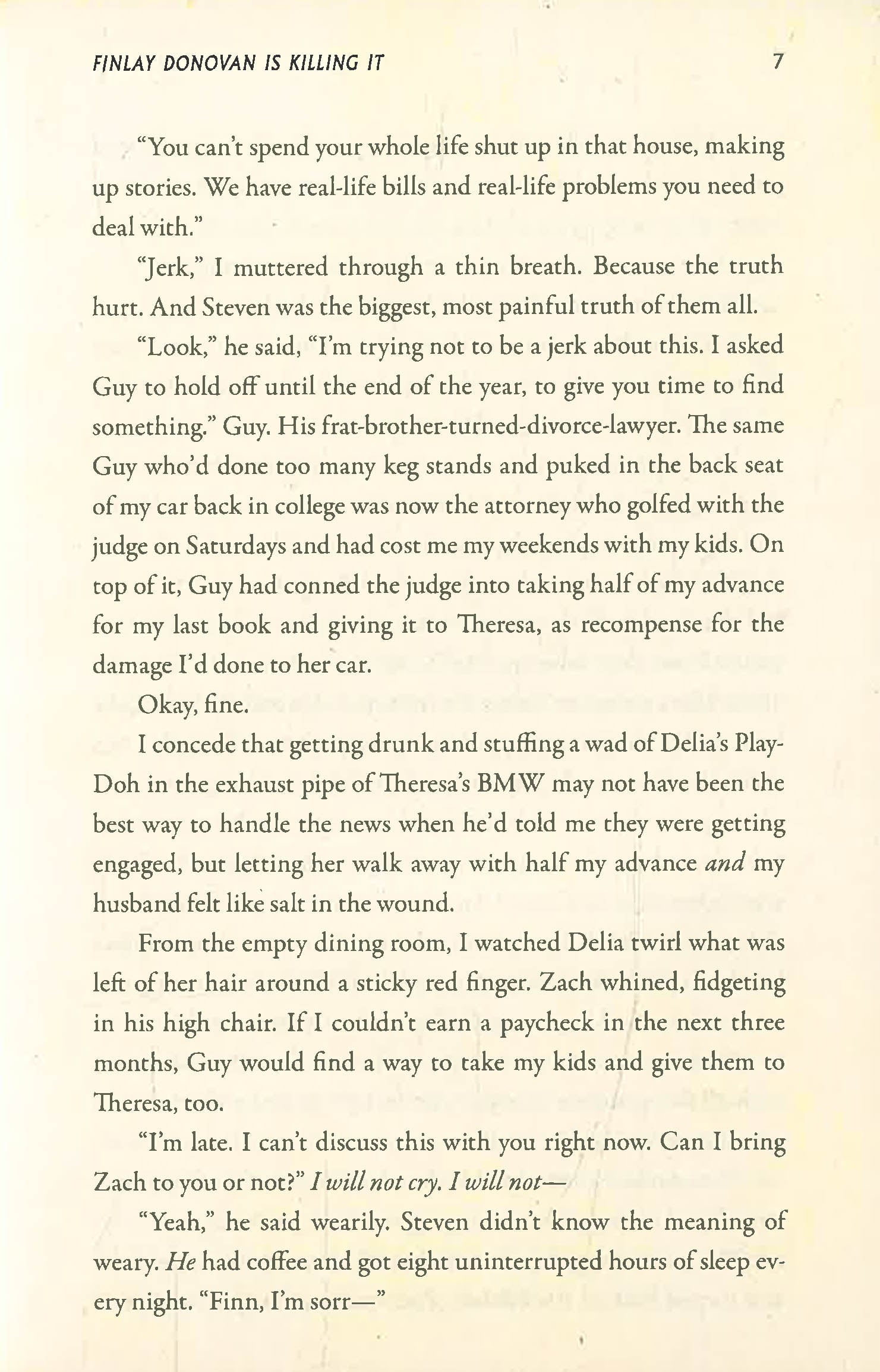Finlay Donovan, single mum and floundering crime writer, is having a hard time. Her ex-husband went behind her back to fire the nanny, and this morning she sent her four-year-old to school with hair duct-taped to her head after an unfortunate incident with scissors.
