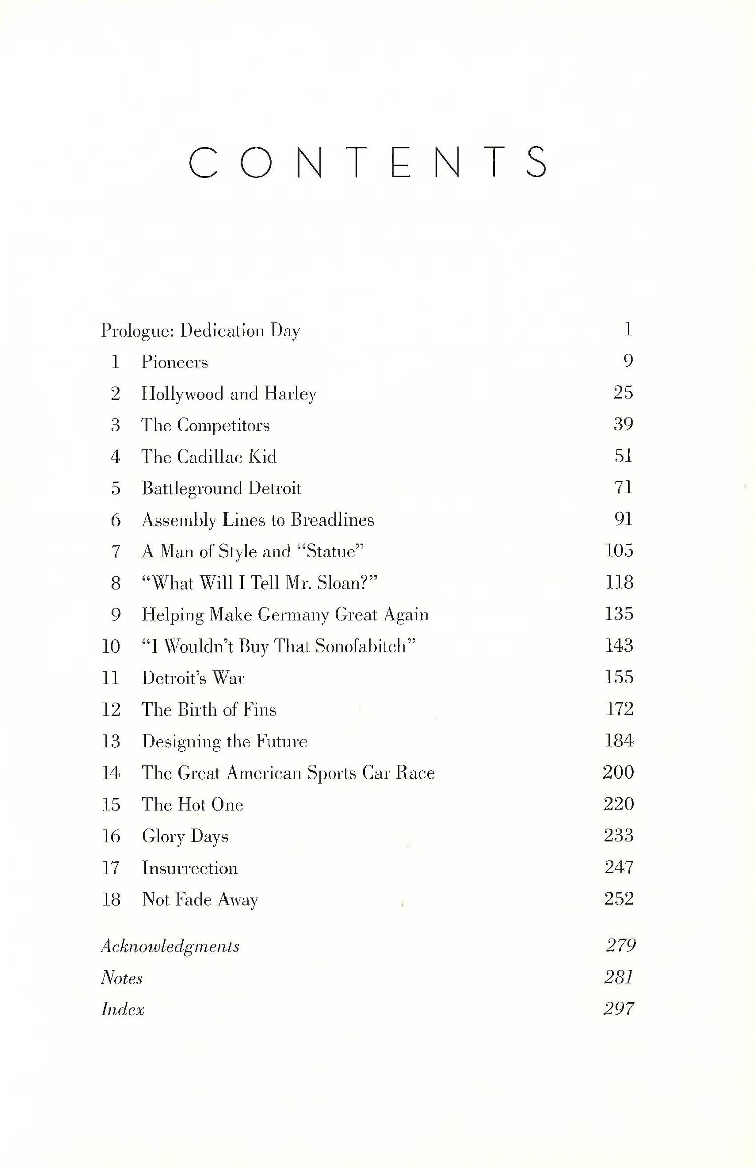As the 1920s roared with the sound of mass manufacturing, Harley returned to Michigan, where, at GM's invitation, he introduced art into the rigid mechanics of auto-making. Over the next thirty years, he functioned as a kind of combination Steve Jobs and Tom Ford of his time, redefining the form and function of the country's premier product. His impact was profound. When he retired as GM's VP of Styling in 1958, Detroit reigned as the manufacturing capitol of the world and General Motors ranked as the most successful company in the history of business.