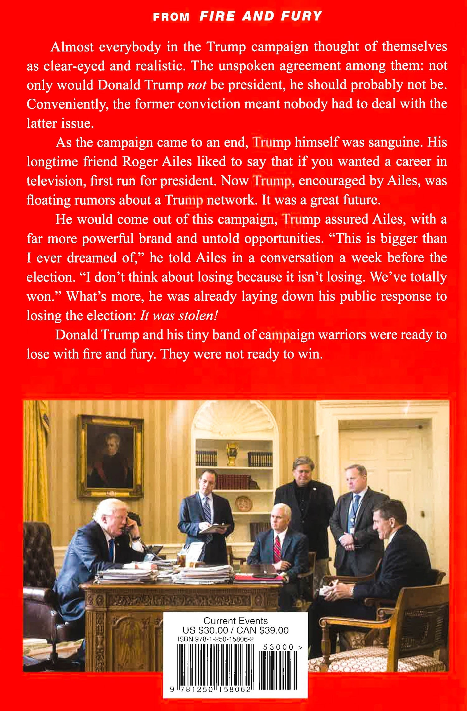 #1 New York Times Bestseller With extraordinary access to the West Wing, Michael Wolff reveals what happened behind-the-scenes in the first nine months of the most controversial presidency of our time in Fire and Fury: Inside the Trump White House. Since Donald Trump was sworn in as the 45th President of the United States, the country--and the world--has witnessed a stormy, outrageous, and absolutely mesmerizing presidential term that reflects the volatility and fierceness of the man elected Commander-in-Chief. This riveting and explosive account of Trump's administration provides a wealth of new details about the chaos in the Oval Office, including:-- What President Trump's staff really thinks of him-- What inspired Trump to claim he was wire-tapped by President Obama-- Why FBI director James Comey was really fired-- Why chief strategist Steve Bannon and Trump's son-in-law Jared Kushner couldn't be in the same room-- Who is really directing the Trump administration's strategy in the wake of Bannon's firing-- What the secret to communicating with Trump is-- What the Trump administration has in common with the movie The Producers Never before in history has a presidency so divided the American people. Brilliantly reported and astoundingly fresh, Fire and Fury shows us how and why Donald Trump has become the king of discord and disunion. "Essential reading."--Michael D'Antonio, author of Never Enough: Donald Trump and the Pursuit of Success, CNN.com "Not since Harry Potter has a new book caught fire in this way...[Fire and Fury] is indeed a significant achievement, which deserves much of the attention it has received."--The Economist