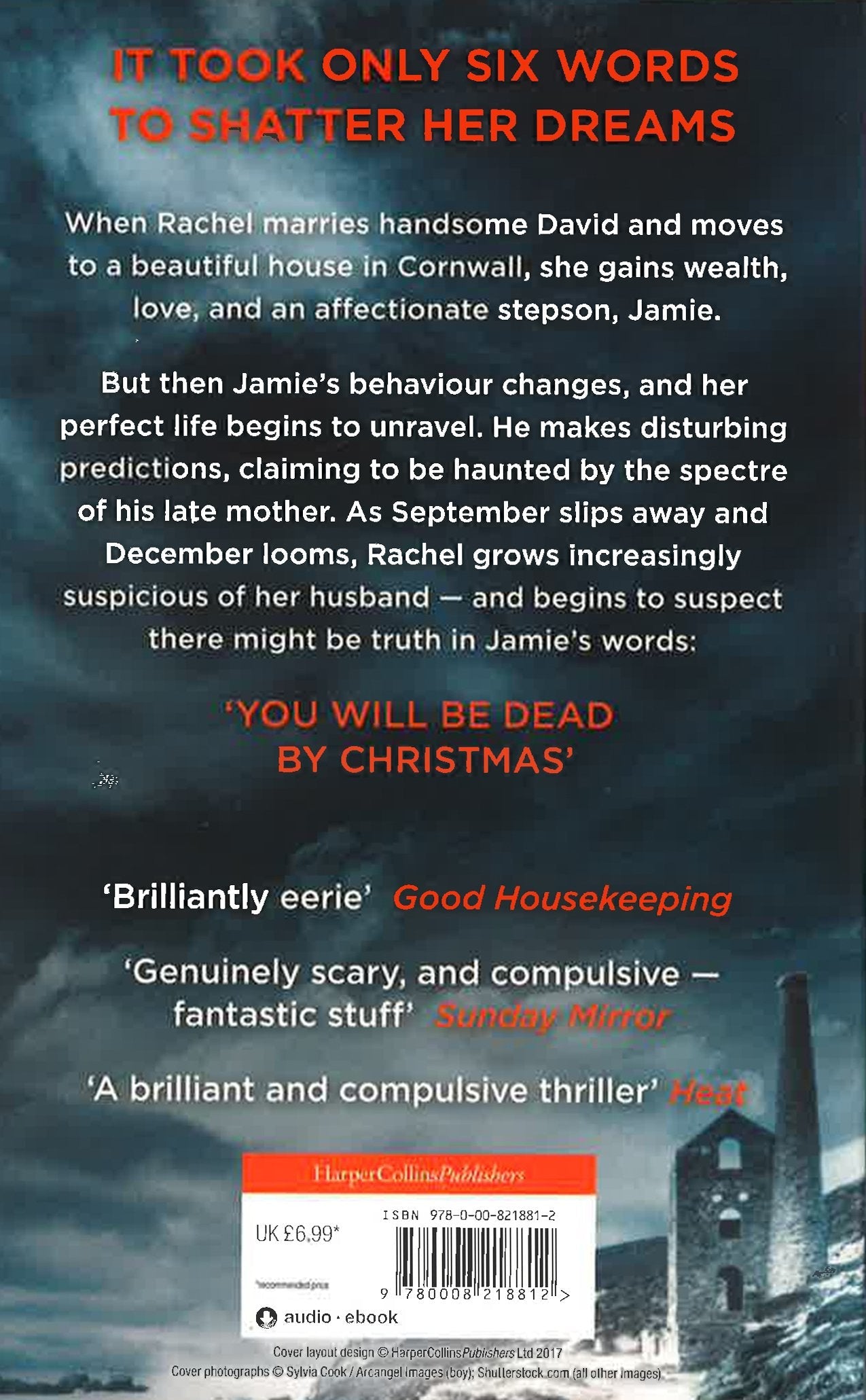 The chilling new psychological thriller by S. K. Tremayne, author of the Sunday Times No. 1 bestseller, THE ICE TWINS. IT TOOK ONLY SIX WORDS TO SHATTER HER DREAMS... When Rachel marries handsome David and moves to a beautiful house in Cornwall, she gains wealth, love, and an affectionate stepson, Jamie. But then Jamie's behaviour changes, and her perfect life begins to unravel. He makes disturbing predictions, claiming to be haunted by the spectre of his late mother. As September slips away and December looms, Rachel grows increasingly suspicious of her husband - and begins to suspect there might be truth in Jamie's words: 'YOU WILL BE DEAD BY CHRISTMAS'