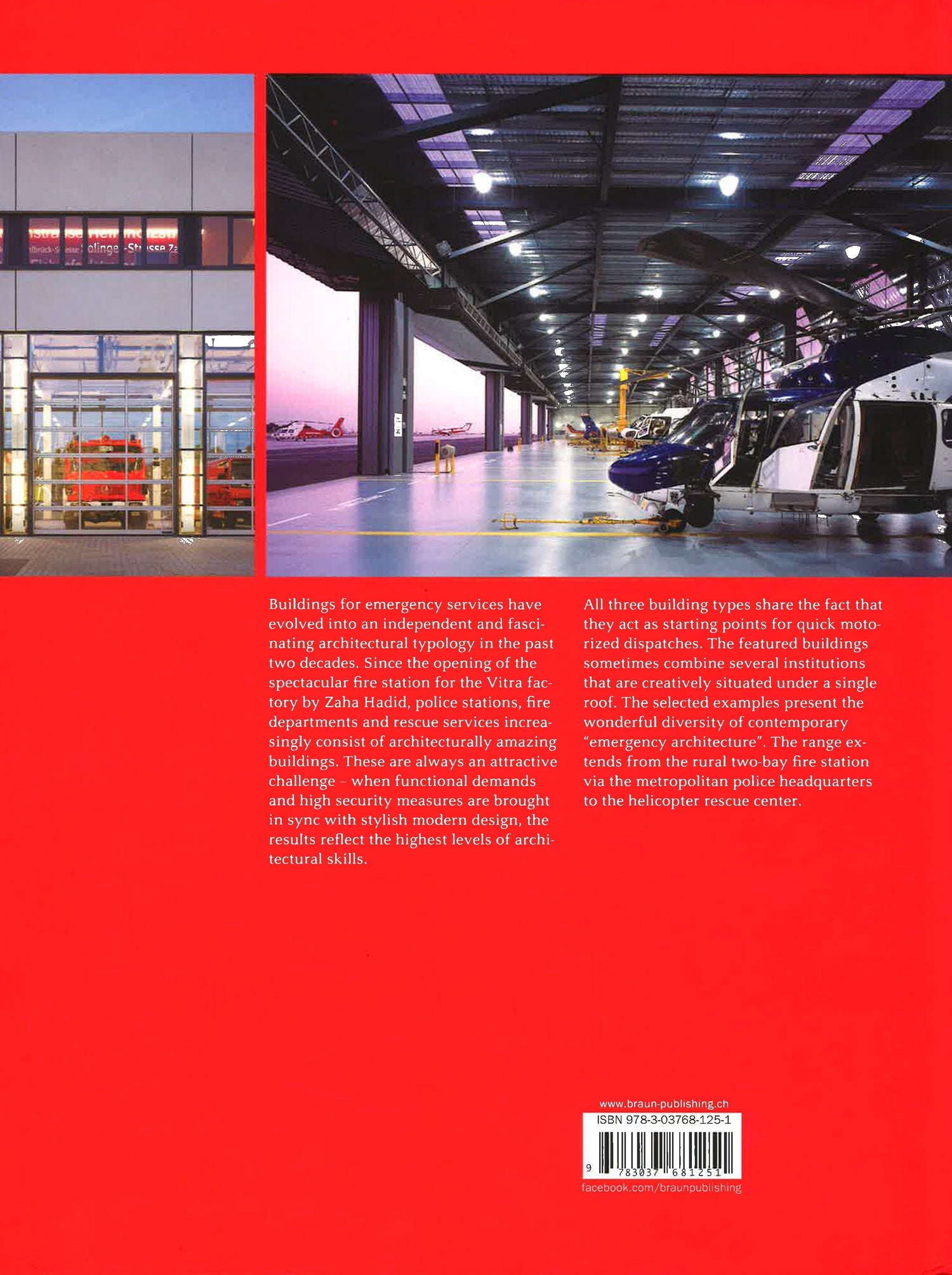 Architecture for rescue services has come a long way in the past decade. Buildings for the police, fire brigades and ambulance stations have lost their often purely functional and shed-like appearance and have begun to strive for recognition as an equitable architectural typology since Zaha Hadid's trailblazing Vitra fire station in Weil am Rhein. This building type certainly is a challenge as there are numerous conditions to be taken into account in terms of functionality and especially security. The examples chosen for this title show an amazing diversity of emergency architecture. The buildings presented frequently house more than one institution, using the latest technology and communication techniques to successfully combine different functions under one roof. The projects included range from the rural two-bay ambulance depot to police headquarters and airport fire departments.