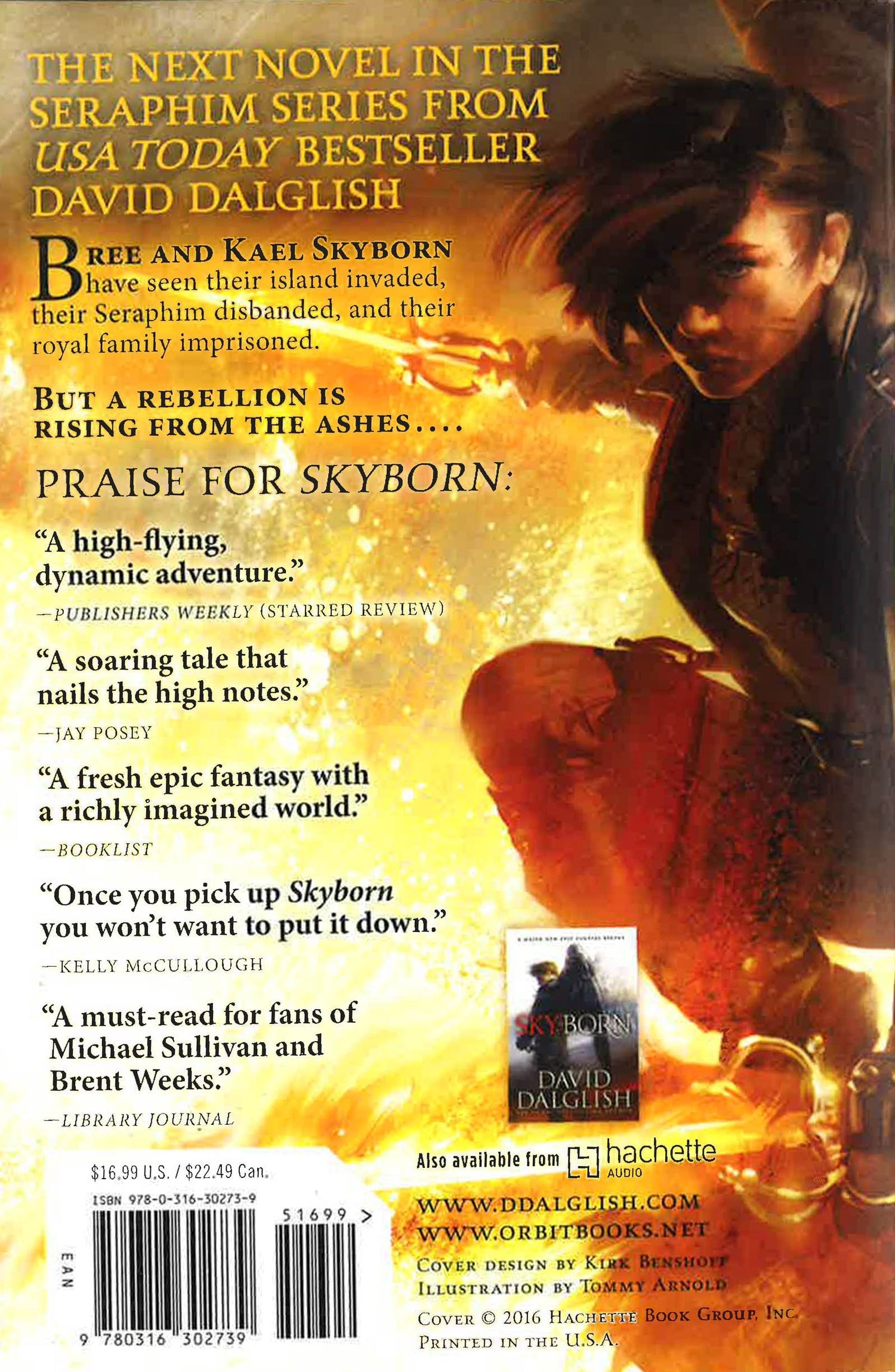 The next novel in the Seraphim series following Skyborn from USA Today bestselling author, David Dalglish. Bree and Kael Skyborn have seen their island invaded, their Seraphim disbanded, and their royal family imprisoned. A rebellion grows from the ashes, demanding Bree to be their Phoenix, their symbol against Center's tyranny, and for Kael to find the doomsday prophet Johan and sway his cult to their side. Should they fail, the hope of their rebellion fails with them.