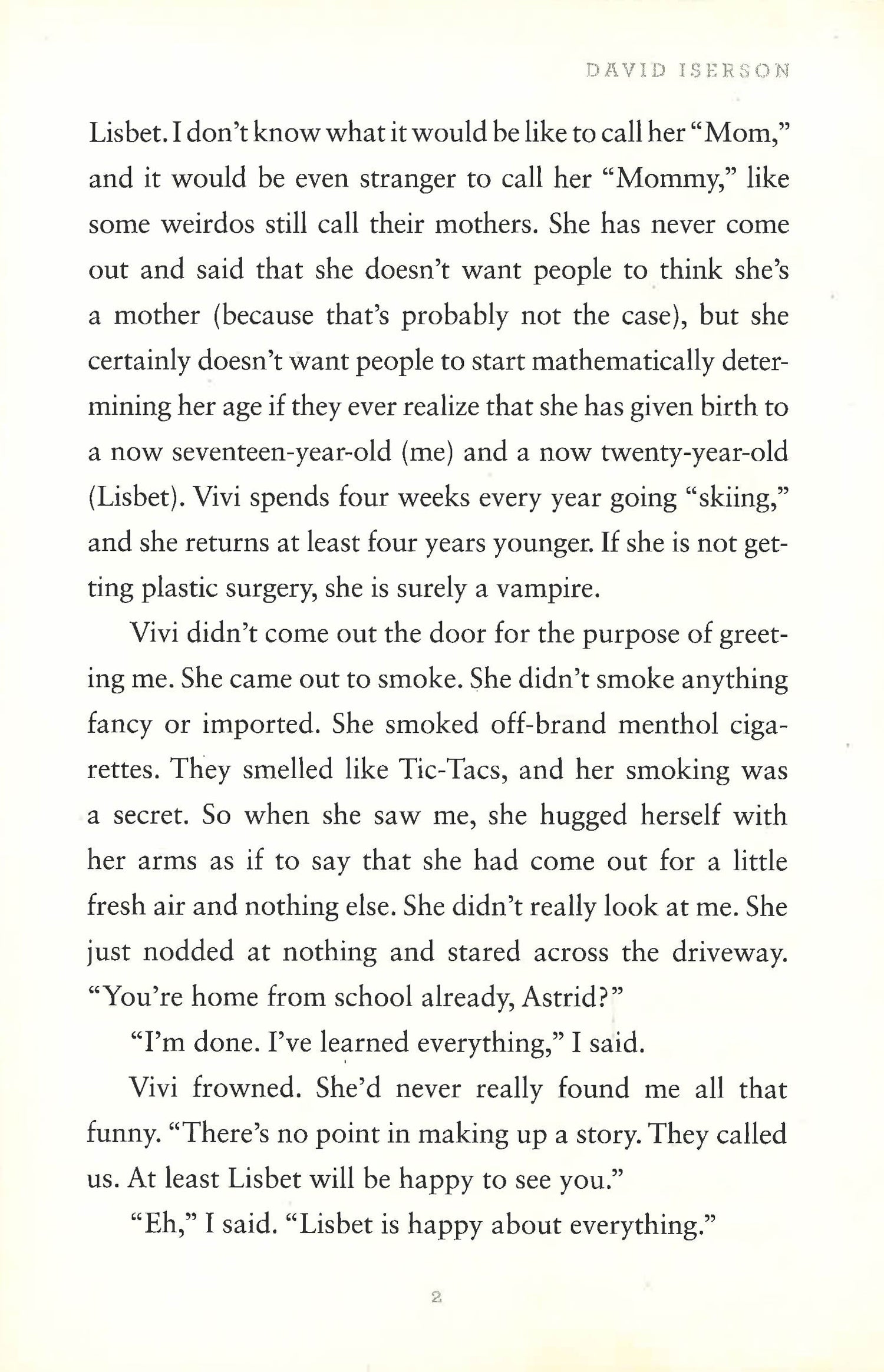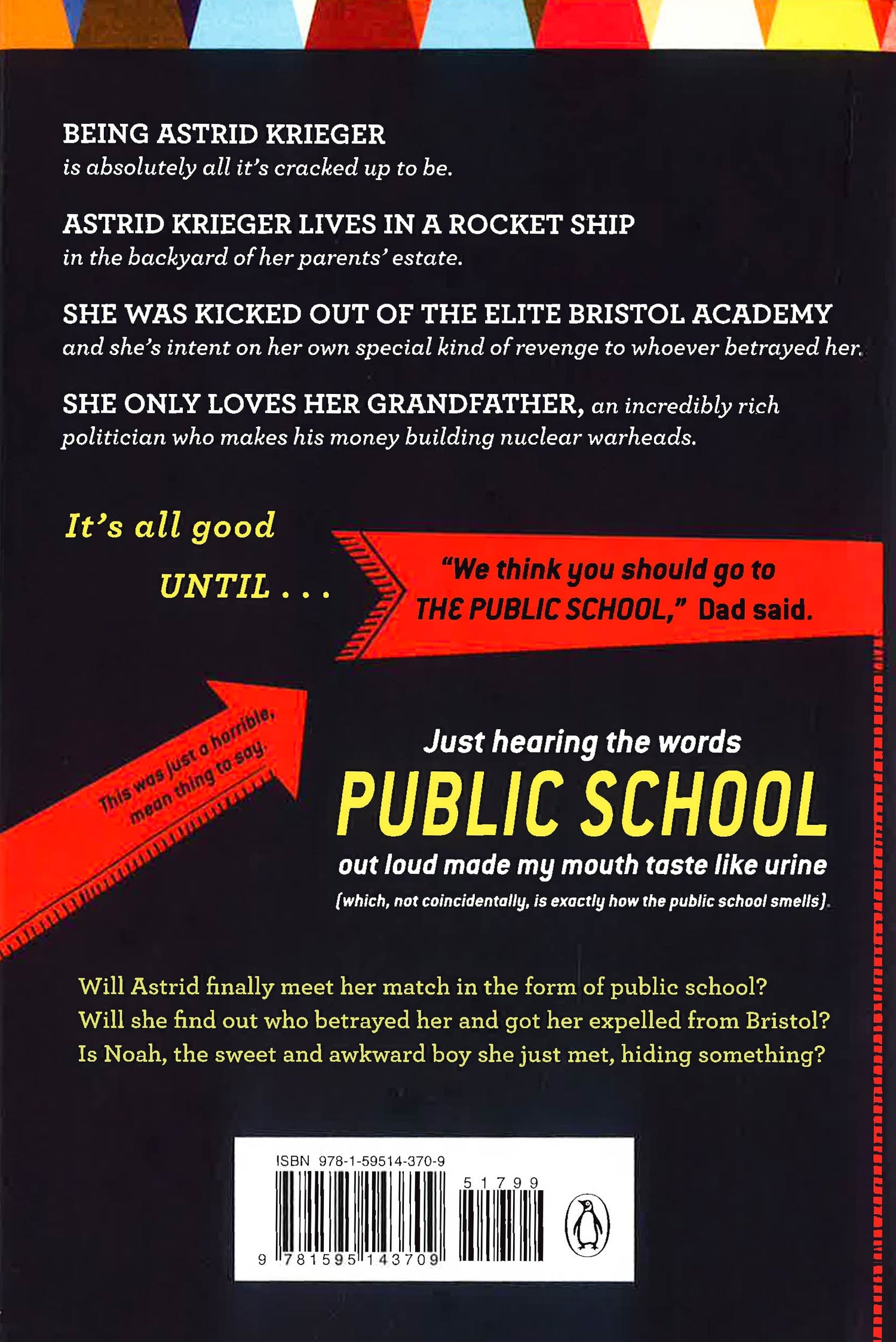 A hilarious tragicomedy from "New Girl" and "SNL" writer David Iserson! Being Astrid Krieger is absolutely all it's cracked up to be. She lives in a rocket ship in the backyard of her parents' estate. She was kicked out of the elite Bristol Academy and she's intent on her own special kind of revenge to whomever betrayed her. She only loves her grandfather, an incredibly rich politician who makes his money building nuclear warheads. It's all good until... ""We think you should go to the public school," Dad said. This was just a horrible, mean thing to say. Just hearing the words "public school" out loud made my mouth taste like urine (which, not coincidentally, is exactly how the public school smells)." Will Astrid finally meet her match in the form of public school? Will she find out who betrayed her and got her expelled from Bristol? Is Noah, the sweet and awkward boy she just met, hiding something?"