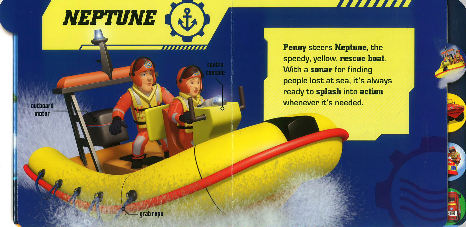 Visit the Mountain Rescue centre to see Wallaby 2 and read how Neptune helps Penny to save a shipwrecked Norman. With bold, bright colours and simple labelled illustrations, little heroes will love learning about the rescues Sam and the Fire Crew make.