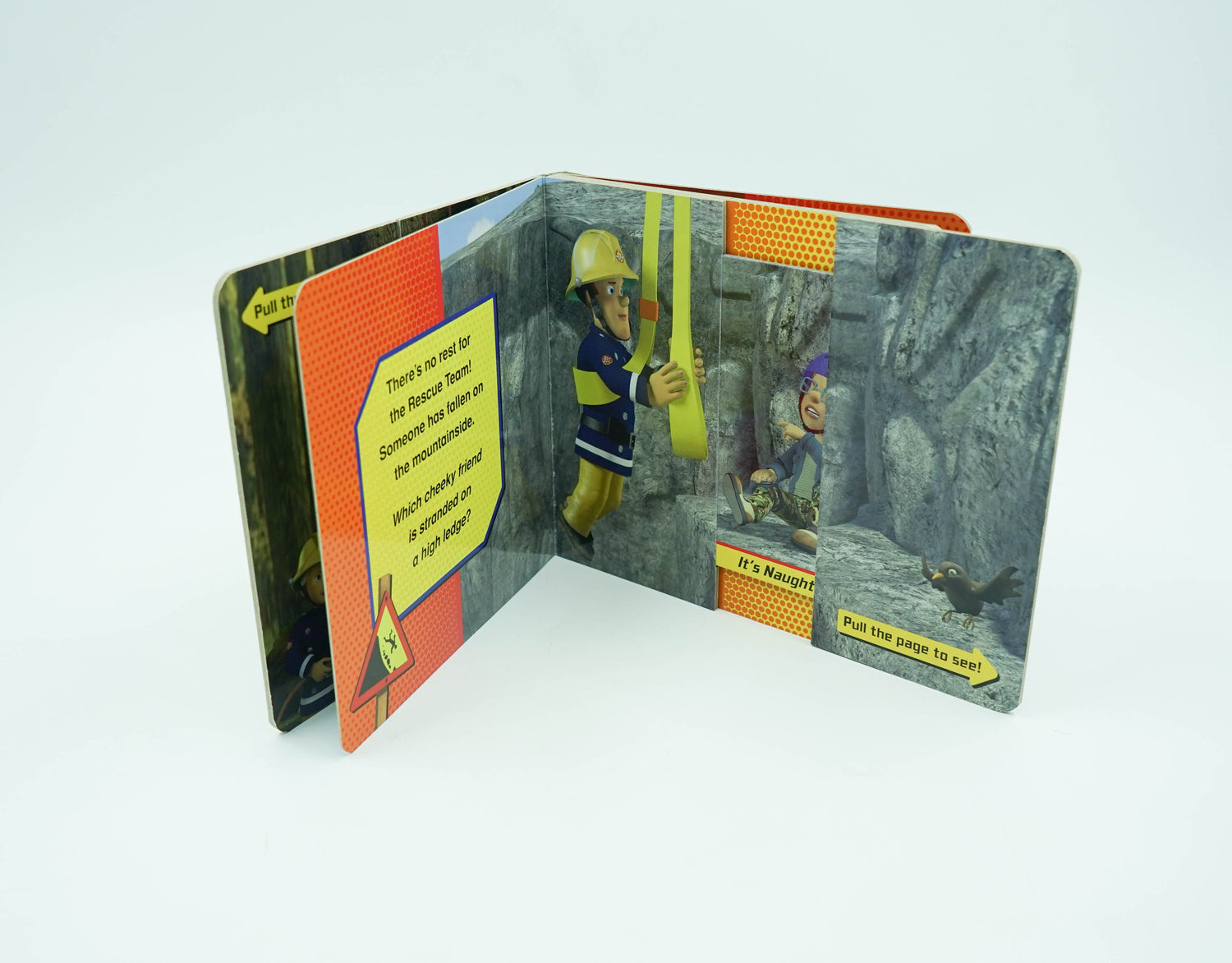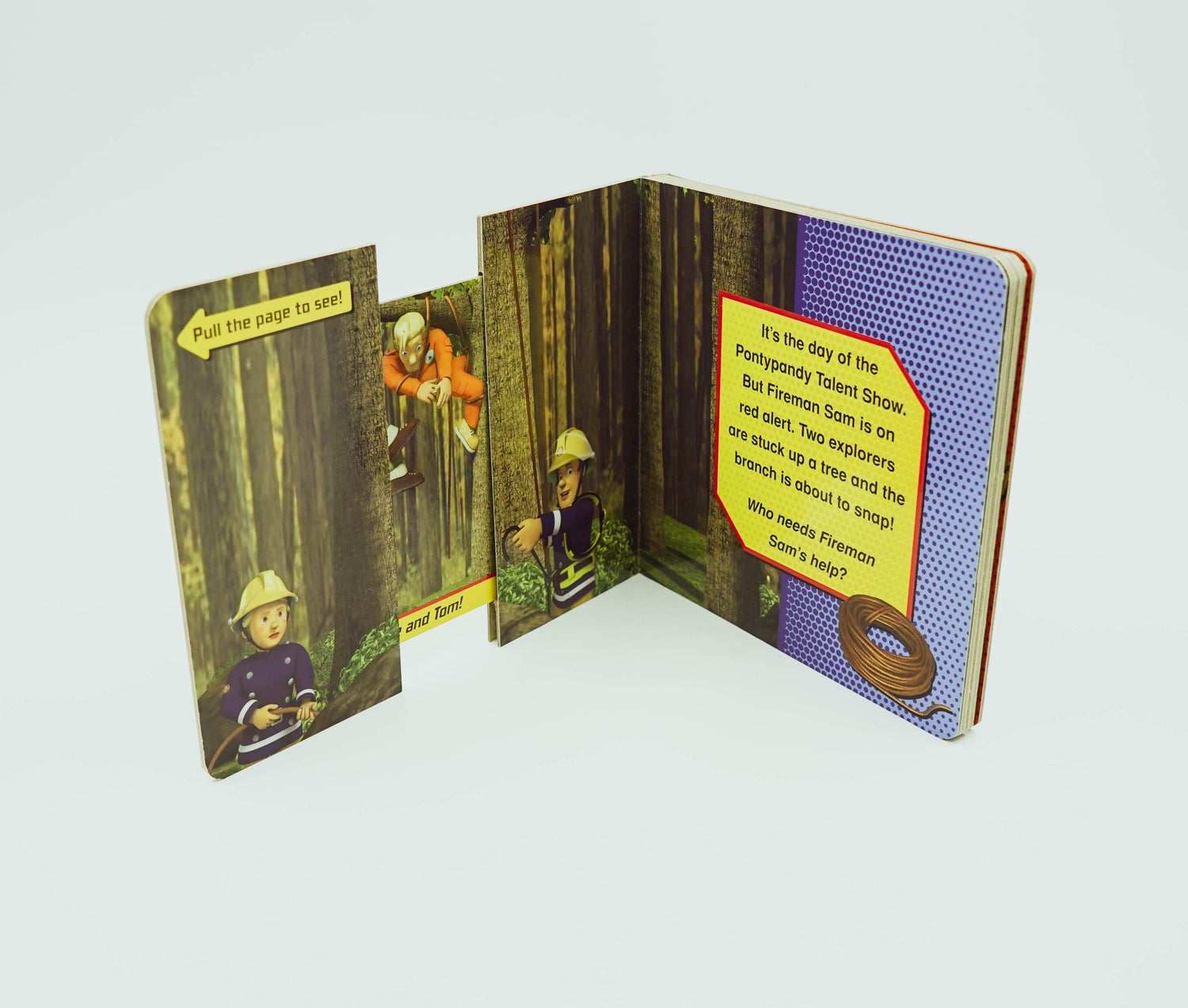 There are some big emergencies in Pontpandy and Fireman Sam needs to act fast! Pull the sliding pages to reveal who is stuck up a tree, who is drifting out to sea and who needs to be rescued up a mountain.