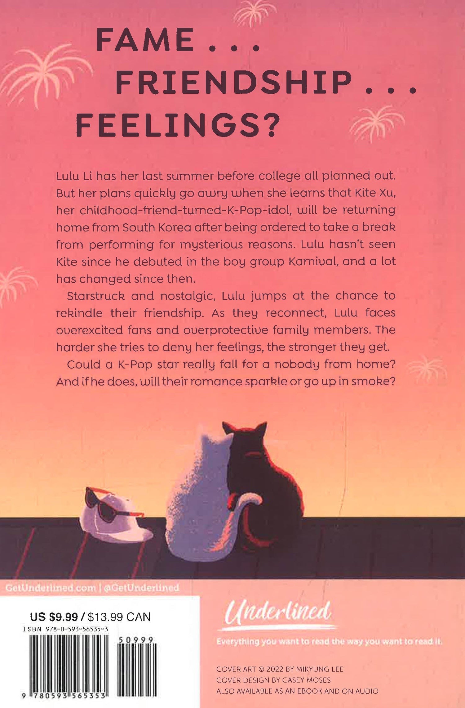 Star-struck and nostalgic, Lulu tries to reconnect with Kite. As they continue to bond and reminisce over the past, Kite’s sister, Connie, warns Lulu not to get too close to her brother. The harder Lulu tries to deny her feelings, the stronger they get. But how could a K-pop star ever fall for a nobody from home? And even if he did, is there any way for their relationship to end but badly?