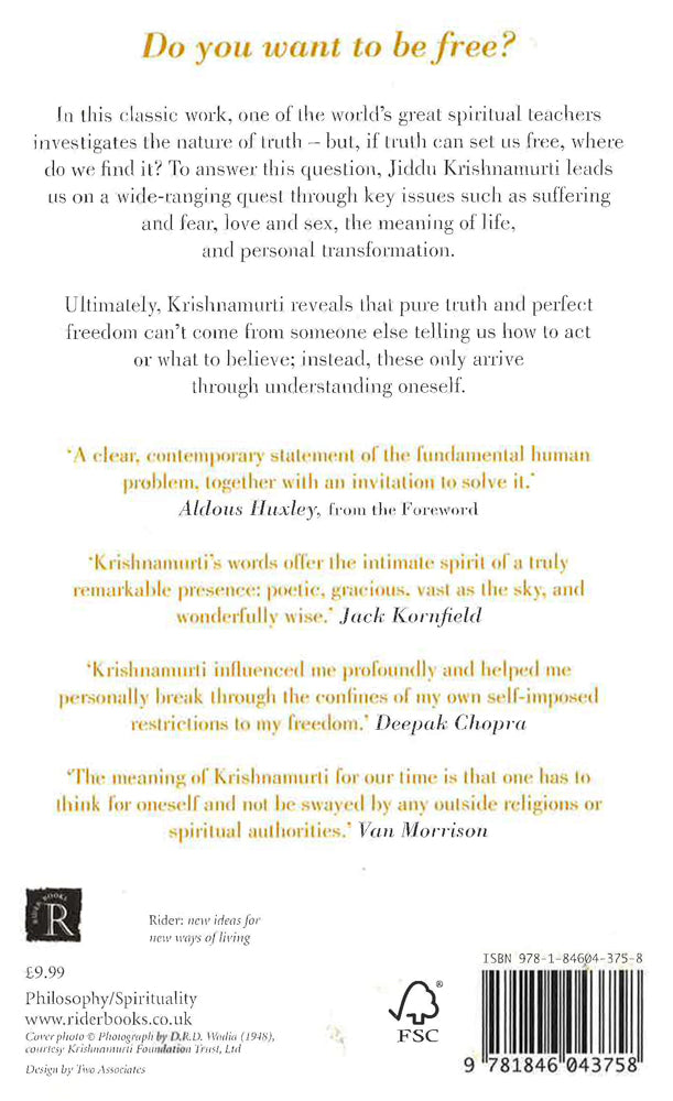 If truth can set us free, where do we find it? In The First and Last Freedom, Krishnamurti argues that we will not find truth in formal institutions, nor in organised religions and their dogmas, nor in any guru or outside authority; for, according to Krishnamurti, truth can only be realised through self-understanding. Controversial and challenging, yet always enlightening, Krishnamurti guides us through society's common concerns, such as suffering and fear, love and loneliness, sex and death, the meaning of life, the nature of God, and personal transformation - consistently relating these topics to the essential search for pure truth and perfect freedom. This classic philosophical and spiritual study offers wisdom and insights particularly suited to our own uncertain times.