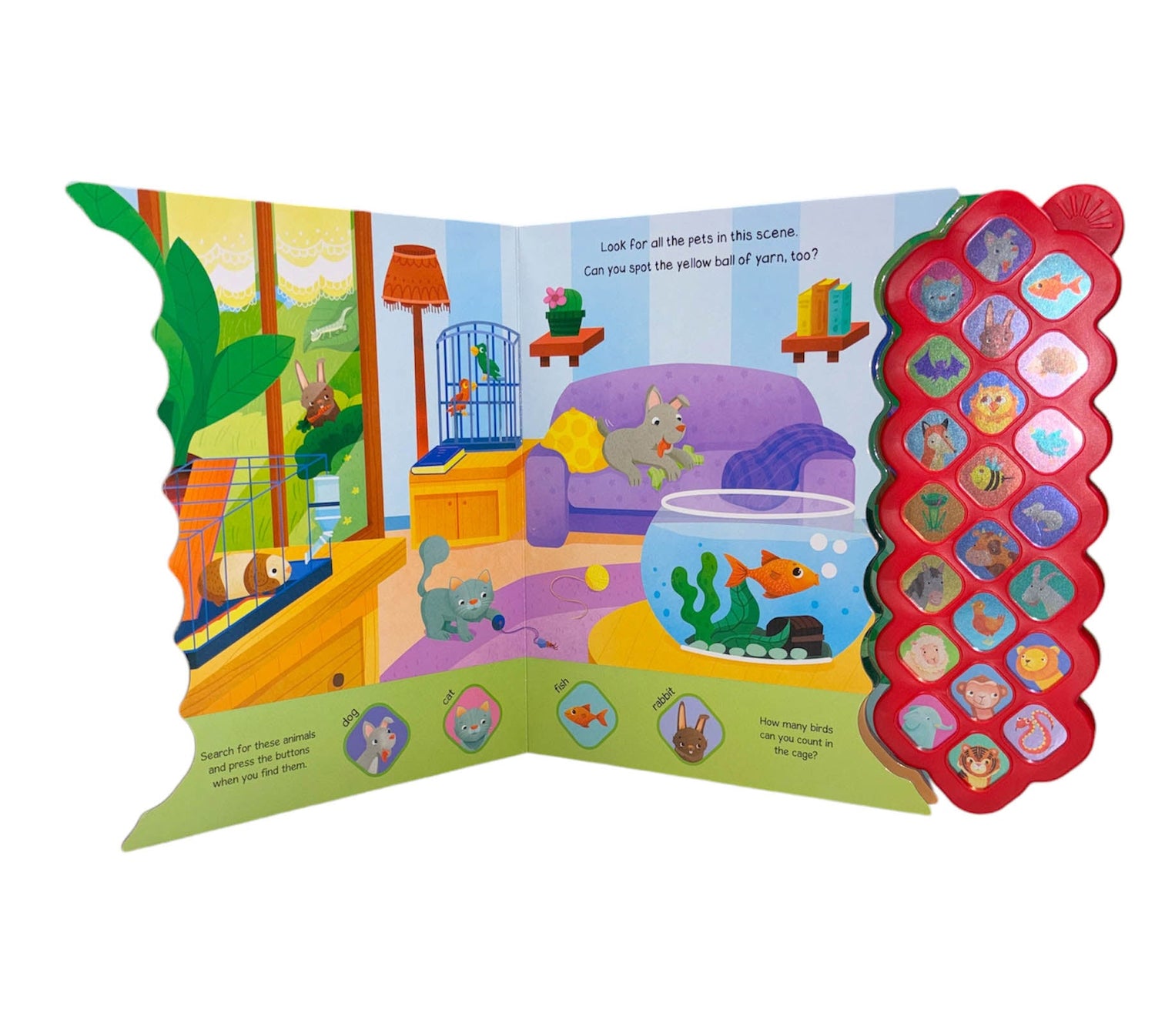 Learn 22 exciting sounds in this fun book! Featuring bright scenes with cute animal characters and lots of buttons to press, this is the perfect introduction to animal sounds.