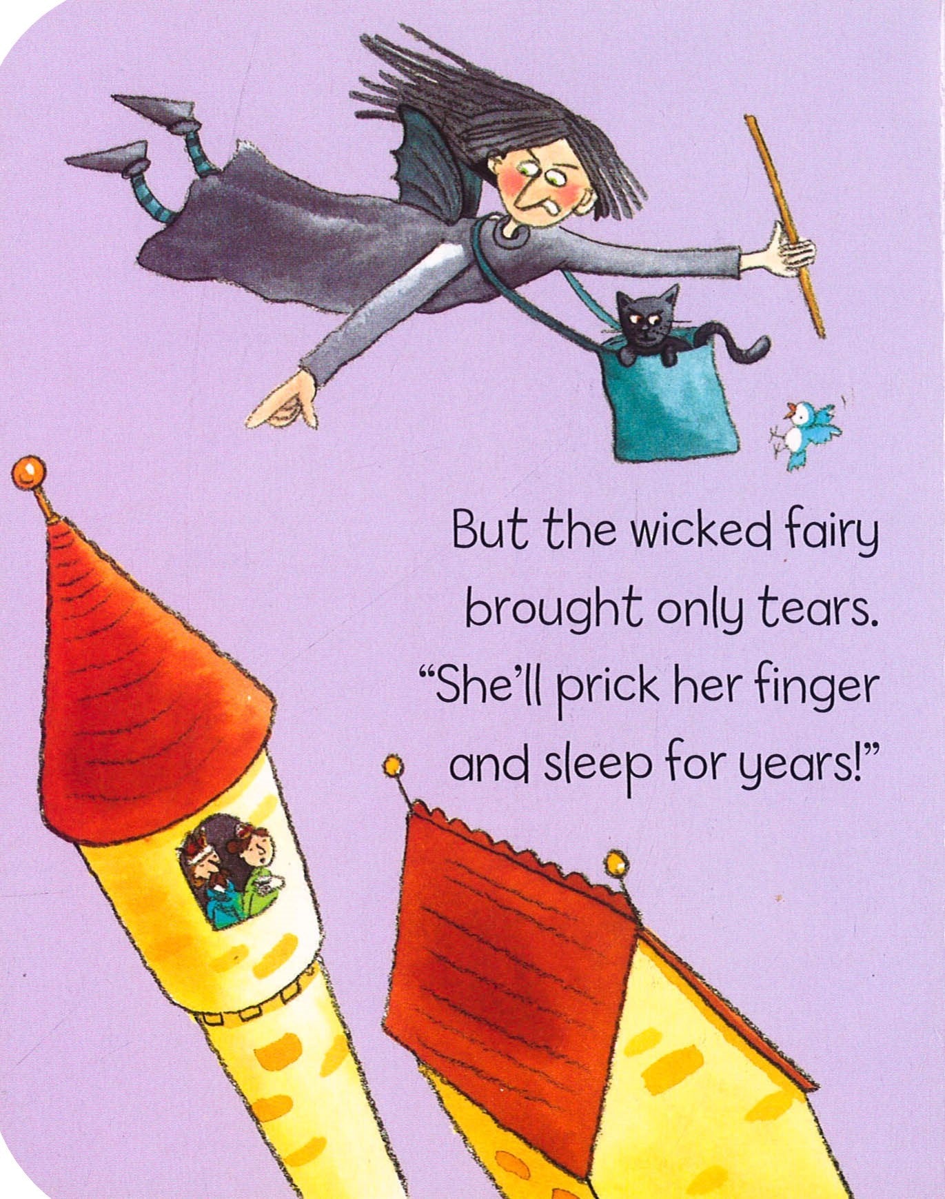 This title lets you follow the adventures of Sleeping Beauty, who is cursed by a bad fairy, and the brave and handsome prince who releases her from the spell. This traditional story is retold in rhyme in this special padded boardbook. Watch out for the little blue bird who appears from time to time throughout the story. Bright illustrations and amusing rhyming text make this book ideal for reading aloud to small children, or for more confident readers to enjoy by themselves. A baby was born to the Queen and King. They planned a special christening. Good fairies flew in from all over the place, Bringing magic gifts: health, beauty, and grace. But one wicked fairy brought only tears. "She'll prick her finger and sleep for years!" Needles and pins were banned straight away. Beauty was safe for another day. Want to know the fairy's next evil plan? Well, read this book, and then you can!