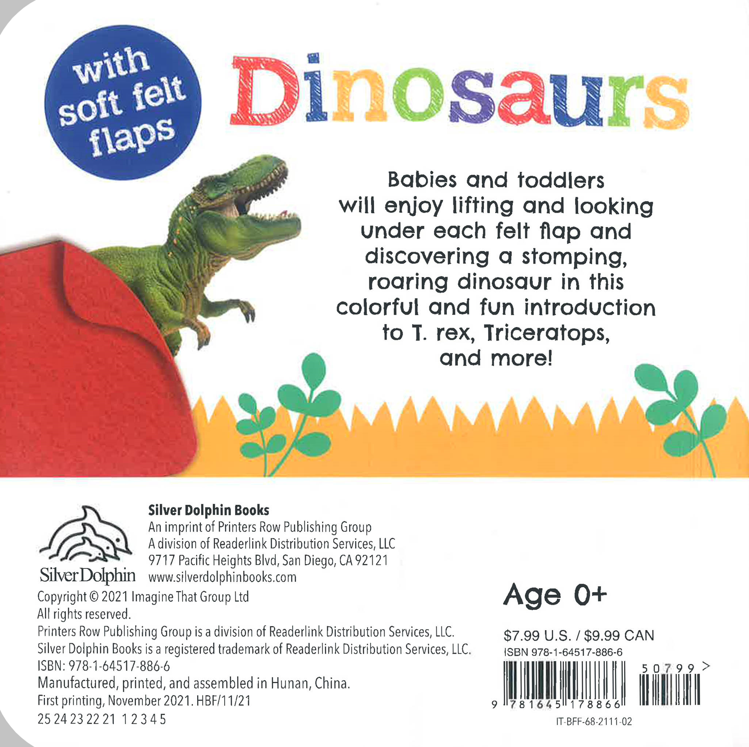 Lift the soft felt flaps to learn fun facts about dinosaurs from T. rex to Stegosaurus and more in this colorful board book perfect for little paleontologists!