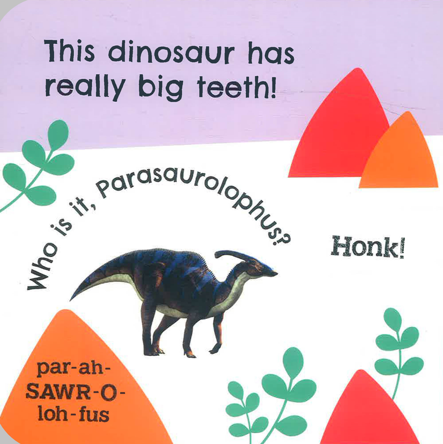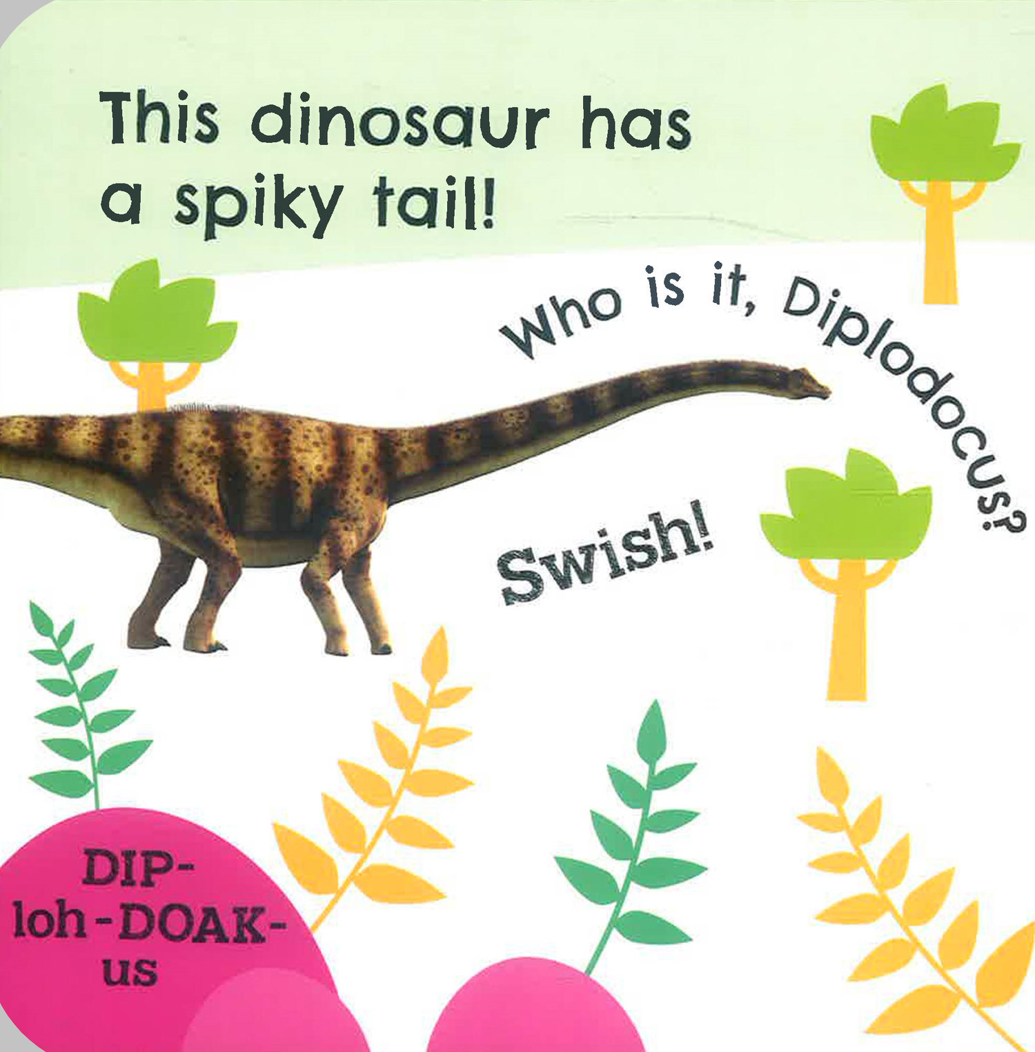 Which dinosaur had a spiky tail? Which dinosaur was an enormous plant-eater? Toddlers will love discovering fun facts about five different dinosaurs in this book with large felt flaps perfect for little hands to lift. With stomping, roaring dinosaurs to uncover on every page, this fun, colorful board book is the perfect introduction to T. rex, Triceratops, Brachiosaurus, Stegosaurus, and Argentinosaurus!