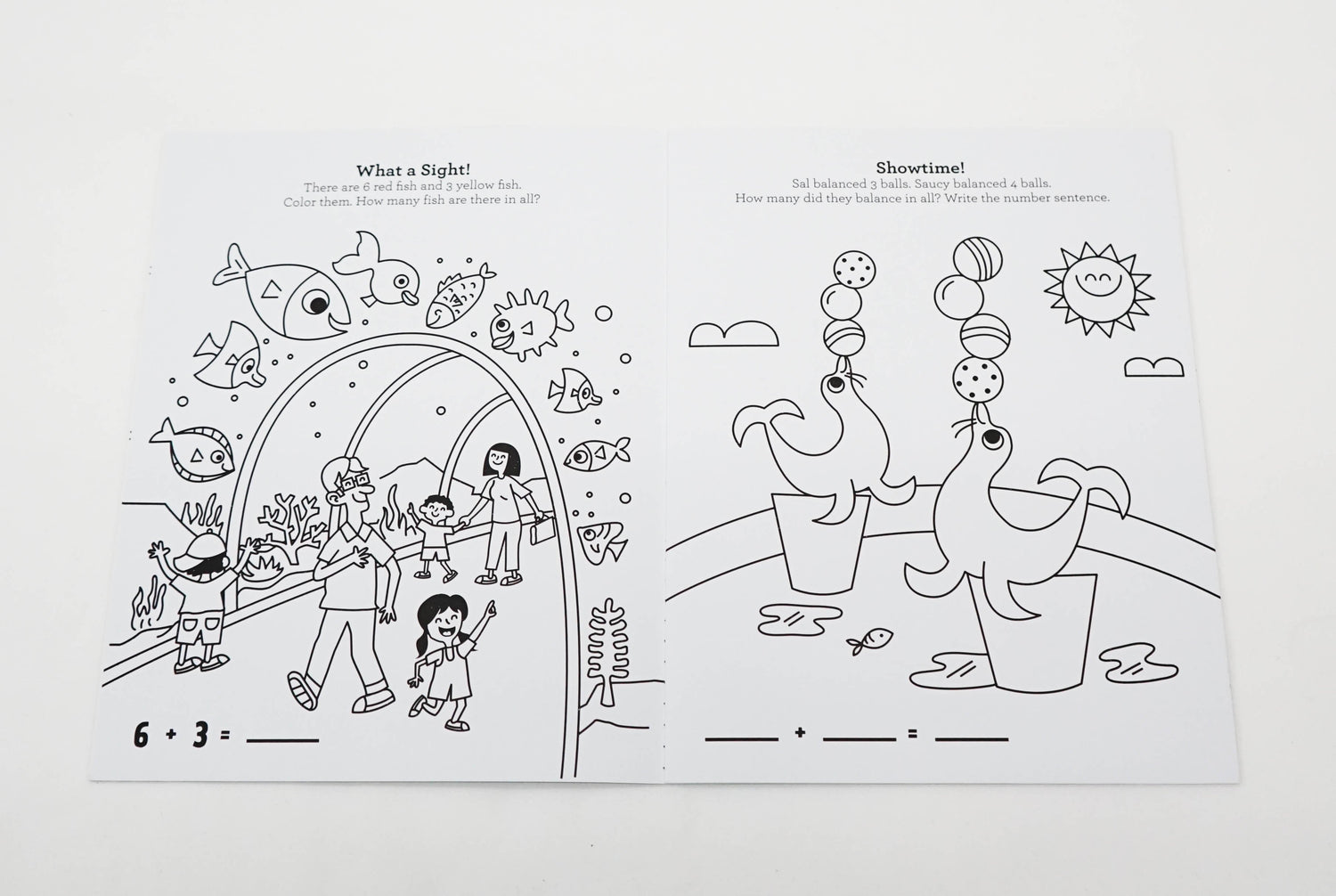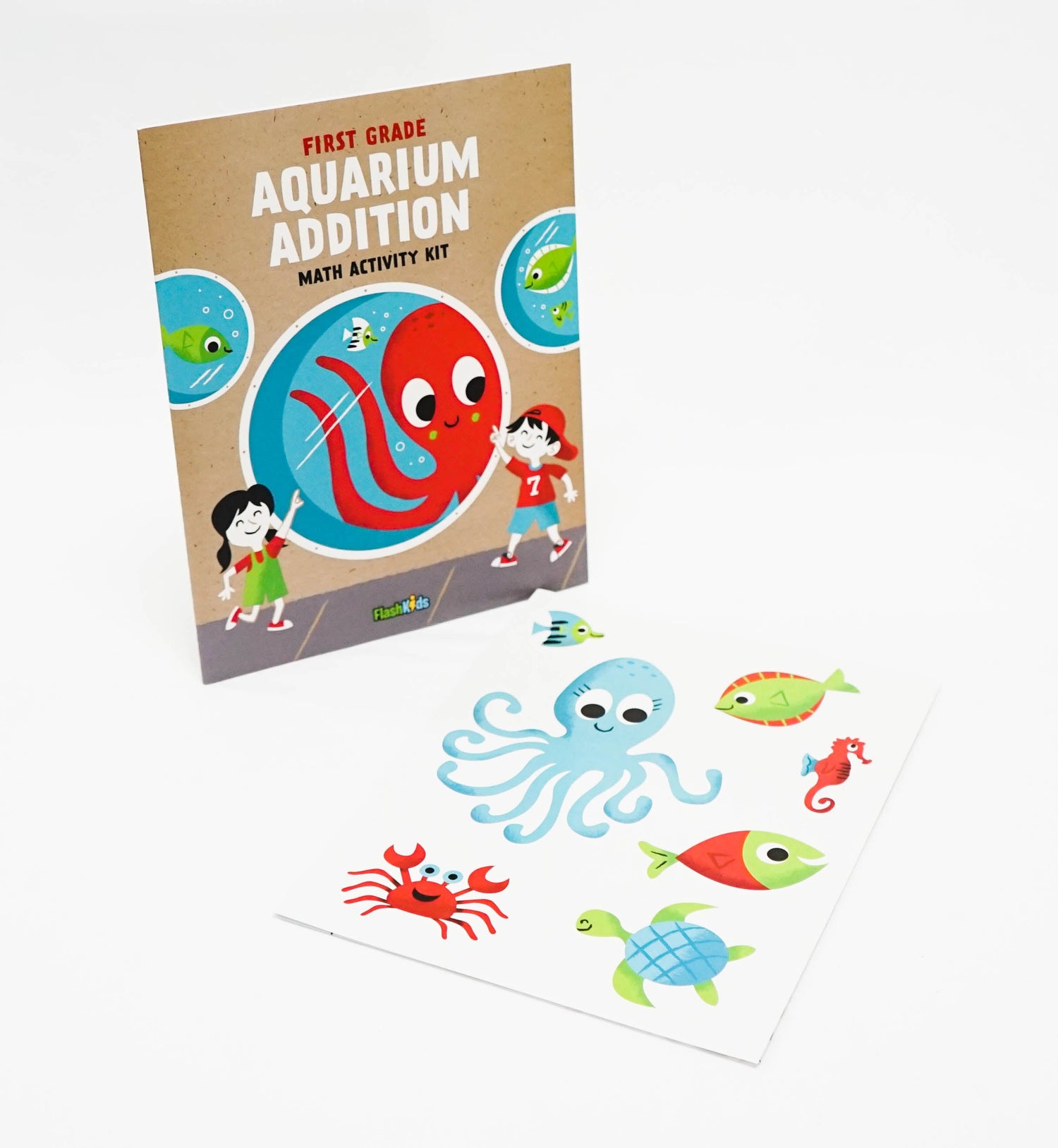 On-the-go learning is great fun with this handy little kit that's perfect to take along anywhere. Featuring a cool aquarium theme, it introduces and reinforces simple addition concepts for first graders and includes a 16-page coloring and activity book, foldout activity placemat, four crayons, and a sheet of stickers.