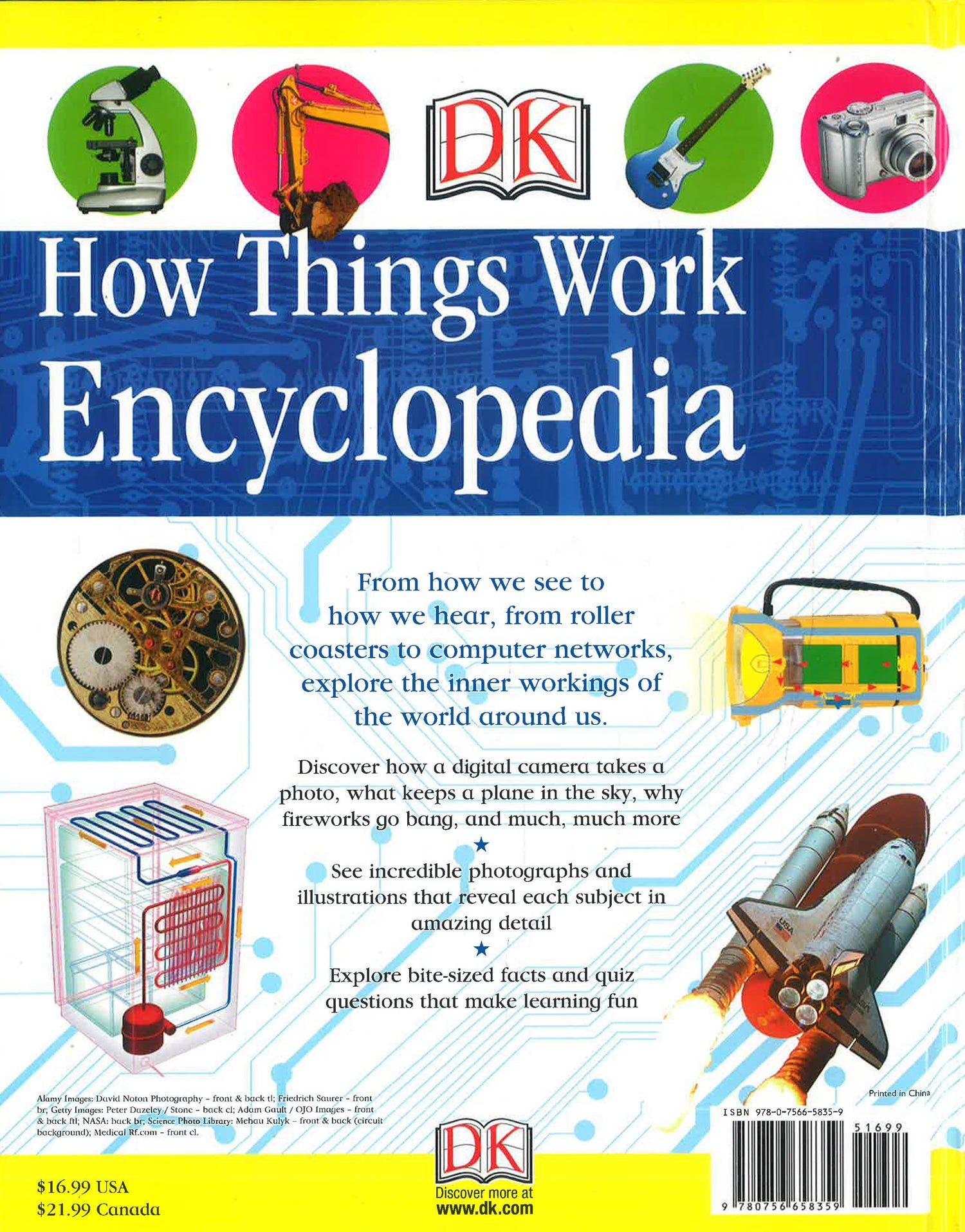 Looking at the technology all around us-and then explaining how it works, the How Things Work Encyclopedia lifts the hood of a car engine, gets inside a TV set, and discovers the power of invisible microwaves. With close-ups, cutaways, and diagrams bringing the technology to life, and timelines illustrating the development of inventions, challenging curiosity quizzes and fascinating facts, the How Things Work Encyclopedia lets children really see and understand what's going on inside.