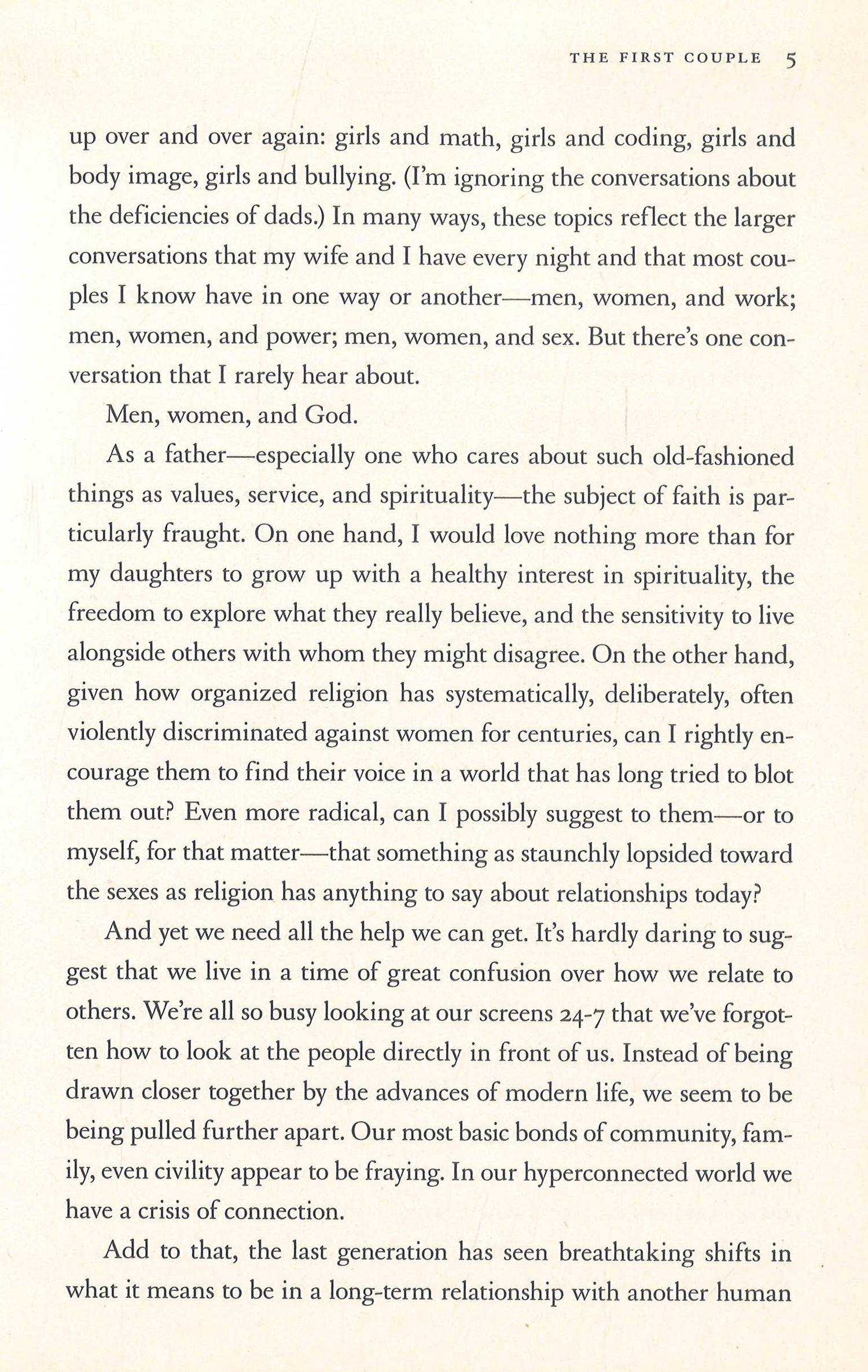 An exploration of the way Adam and Eve introduced the idea of love into the world, and how they continue to shape our deepest feelings about relationships, family, and togetherness.Since antiquity, Adam and Eve have stood at the center of every conversation about men and women. Yet instead of celebrating them, history has blamed them for bringing sin, deceit, and death into the world.In this fresh retelling of their story, Bruce Feiler travels from the Garden of Eden in Iraq to the Sistine Chapel in Rome, discovering how Adam and Eve should be hailed as exemplars of a long-term, healthy, resilient relationship. At a time of discord and fear over the strength of our social fabric, Feiler shows how history's first couple can again be role models for unity, forgiveness, and love.