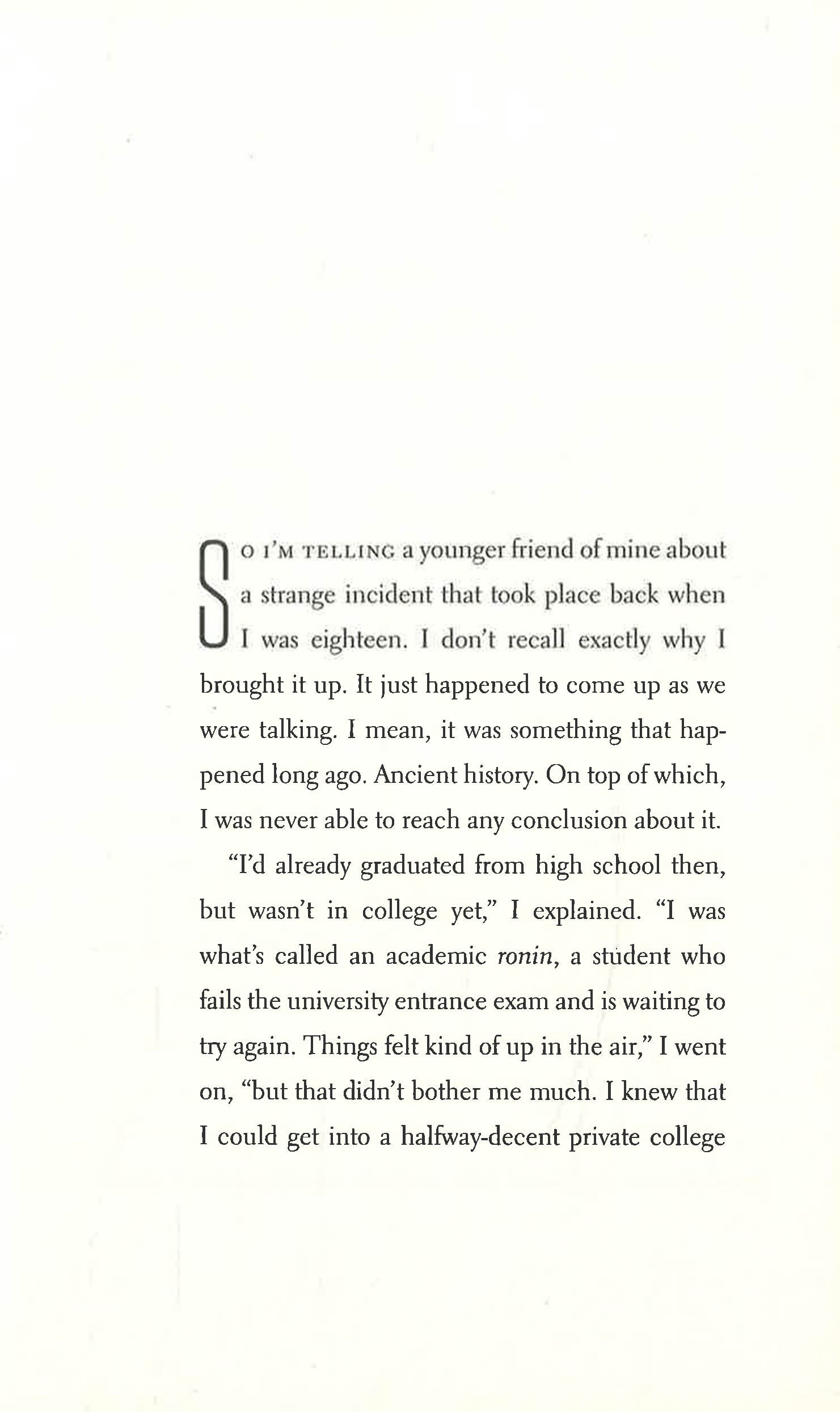 The eight masterly stories in this new collection are all told in the first person by a classic Murakami narrator. From nostalgic memories of youth, meditations on music, and an ardent love of baseball to dreamlike scenarios and invented jazz albums, together these stories challenge the boundaries between our minds and the exterior world. Occasionally, a narrator who may or may not be Murakami himself is present. Is it memoir or fiction? The reader decides.