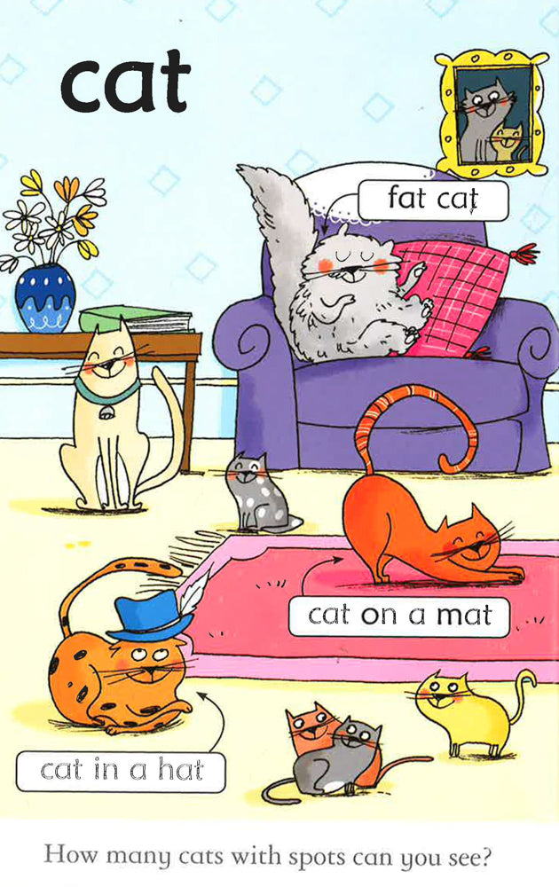 this appealing book uses witty and lively scenes to introduce easy-to-read words and common spelling patterns.