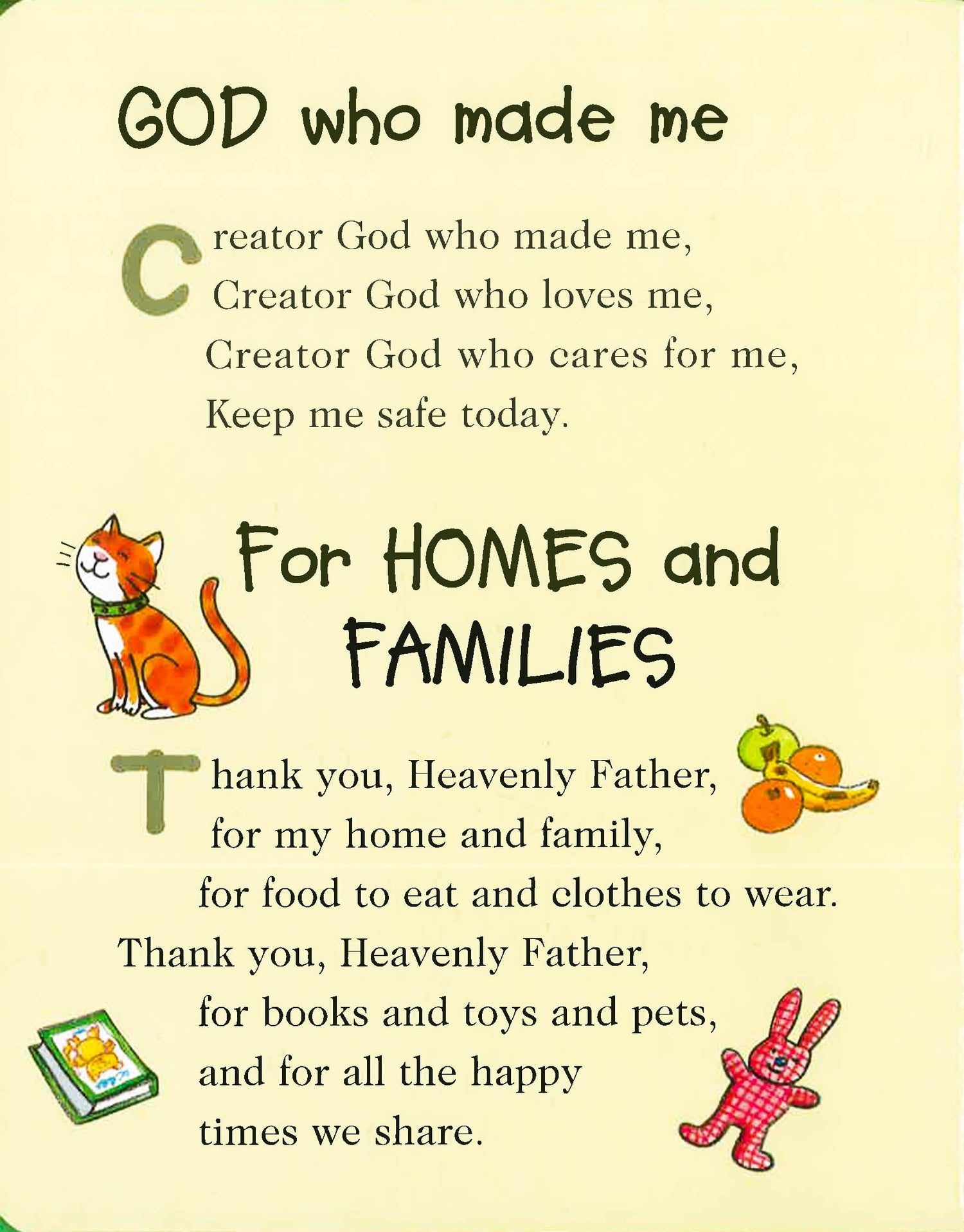 This charmingly illustrated book is an inspiring collection of prayers and wishes that any child will love to use. Containing verses that are suited to every mood and occasion, the book offers blessings on waking, thoughts for times of joy and thankfulness, devotions to the wonders of nature, hopes for the future, and prayers to help those in need and to end suffering. Pretty pictures on every page convey the beauty of God's creation, including animals, family and friends, and will fill young readers with a sense of peace and happiness.