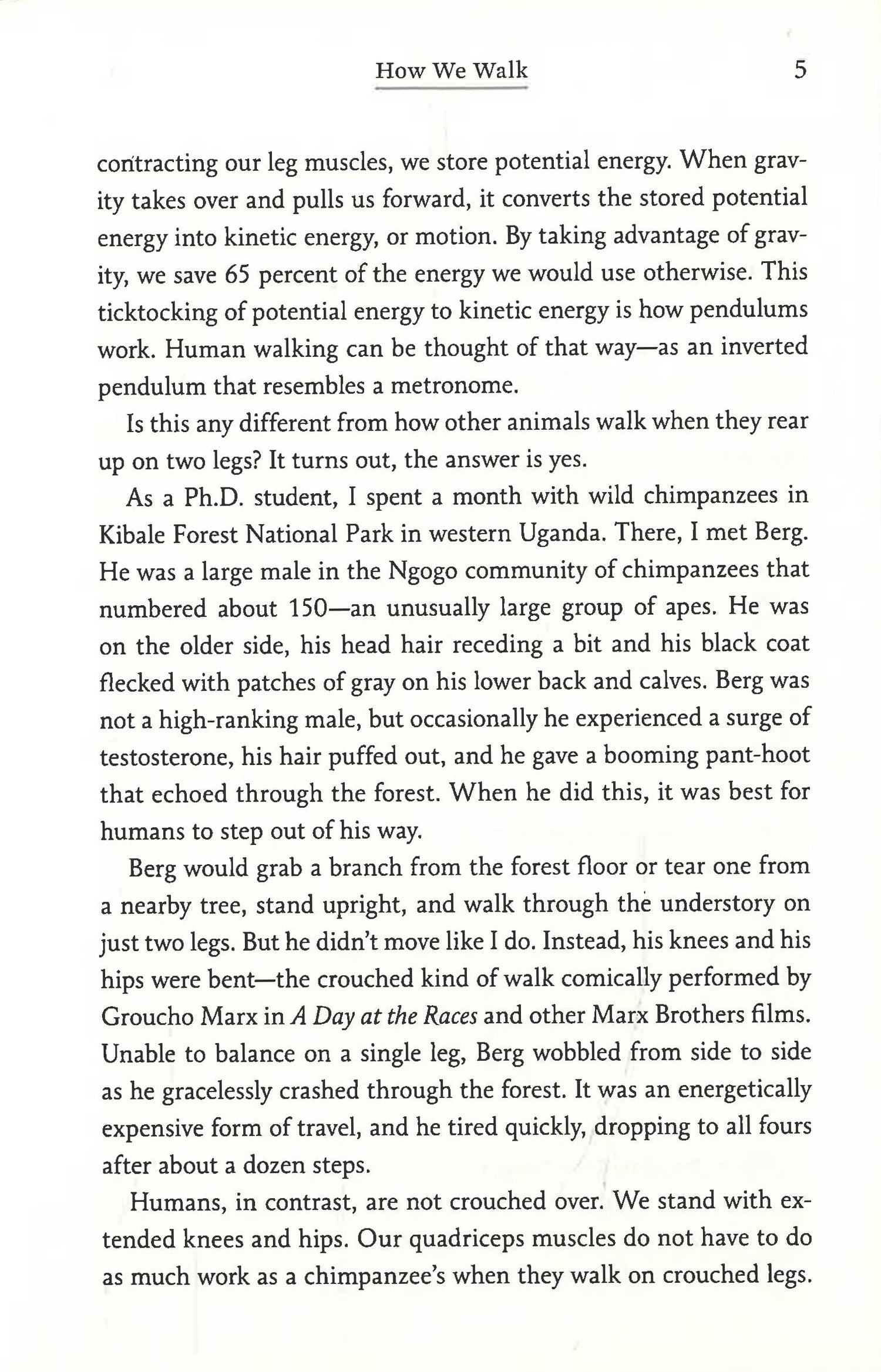 Humans are the only mammals to walk on two, rather than four legs—a locomotion known as bipedalism. We strive to be upstanding citizens, honor those who stand tall and proud, and take a stand against injustices. We follow in each other’s footsteps and celebrate a child’s beginning to walk. But why, and how, exactly, did we take our first steps? And at what cost? Bipedalism has its drawbacks: giving birth is more difficult and dangerous; our running speed is much slower than other animals; and we suffer a variety of ailments, from hernias to sinus problems.