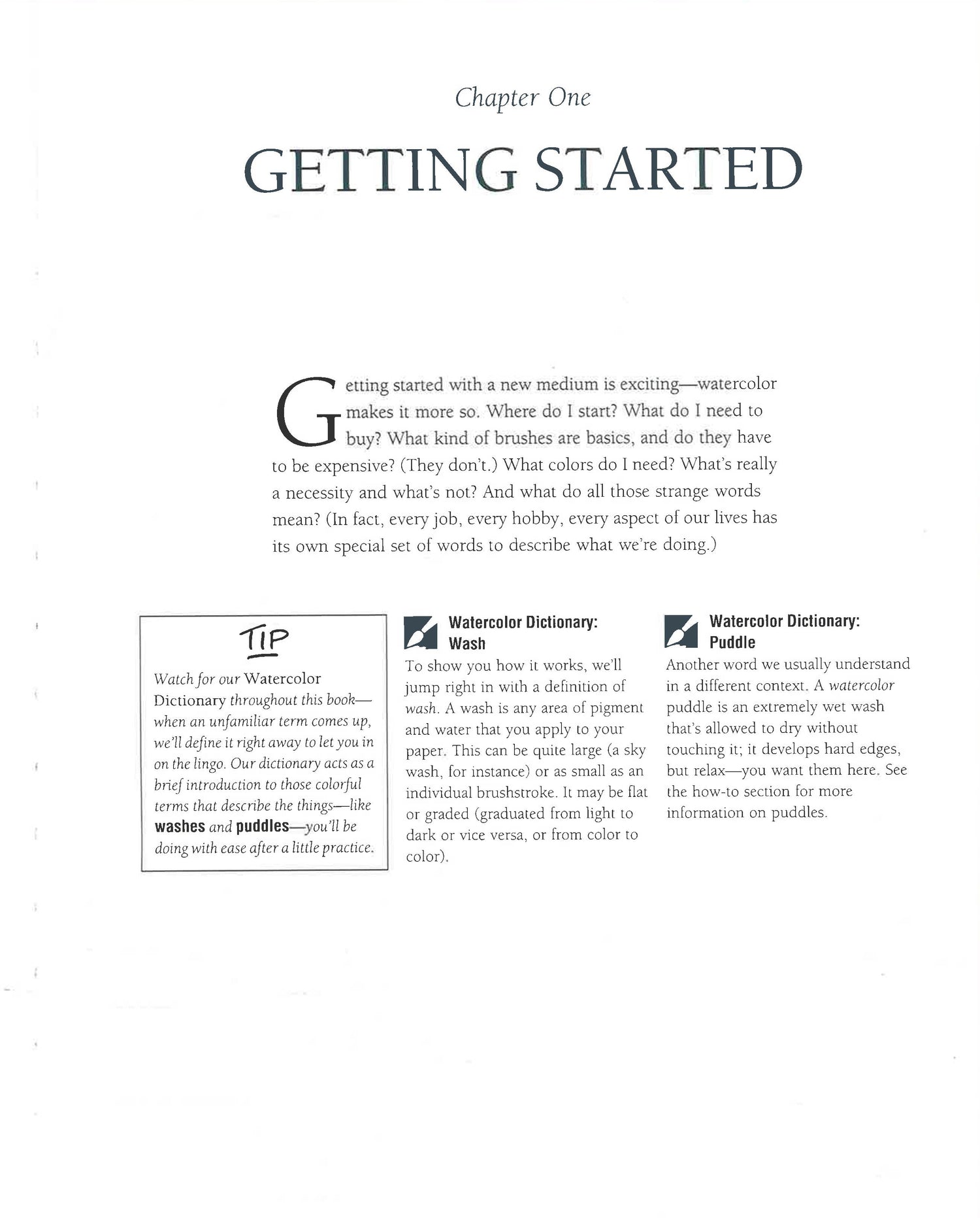 • Explanations of watercolor terms (such as "washes" and "puddles")