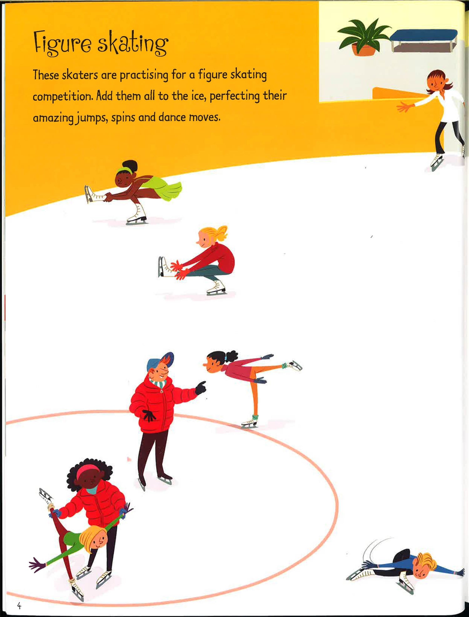 Add stickers to the ice where wobbly children are learning to skate, a fast ice hockey match is underway and some ice-cool dancers are showing off all their moves at an ice disco. This is a great way to learn about ice skating and may encourage children to want to try it themselves. Part of a large range of Usborne First Sticker Books, covering topics as diverse as cars, ballet, dragons, London, monkeys and the body.