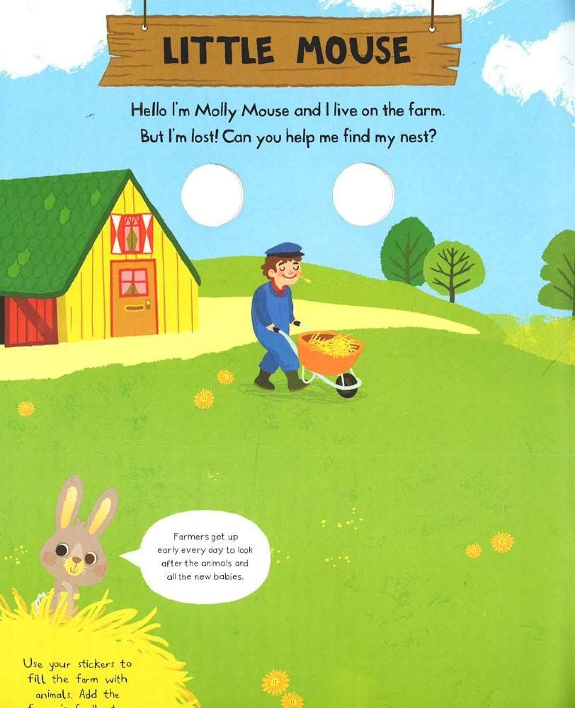 Join Molly Mouse as she meets all the animals and their googly-eyed babies on Funny Farm in Baby Animals: First Sticker Story Fun. Get creative and have fun completing the eleven farmyard scenes, imaginatively illustrated by Miriam Bos.