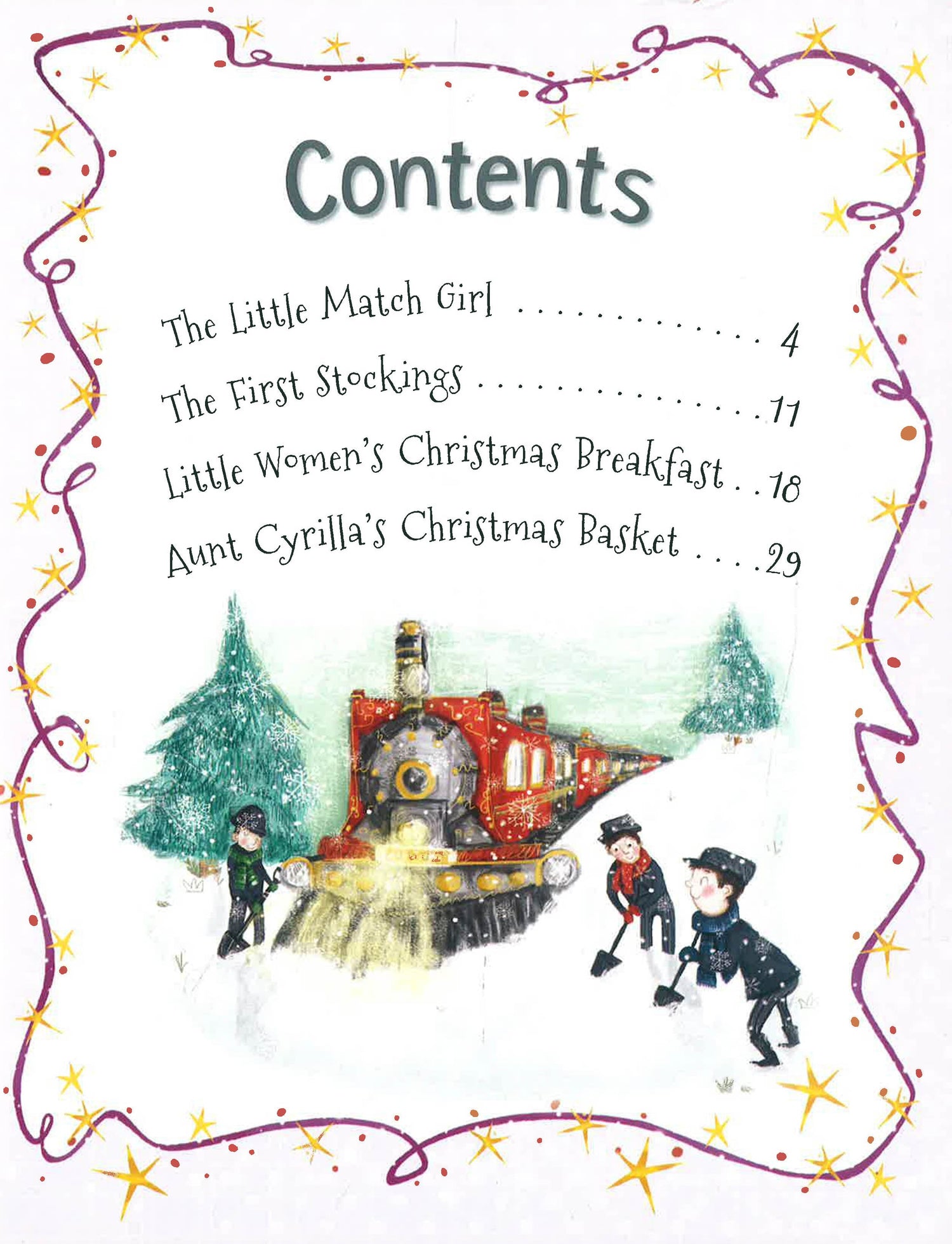 Christmas Stories The First Stockings and other stories is a wonderfully festive storybook for children aged 5+. Beautifully illustrated throughout, every story is brimming with magic, fun, presents and goodwill. With a stunning sparkly cover, this book is an ideal gift at Christmas time. Stories included: The Little Match Girl, The First Stockings, Little Women's Christmas Breakfast, Aunt Cyrilla's Christmas Basket.