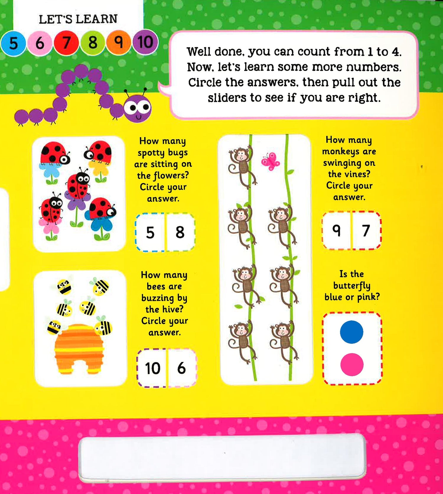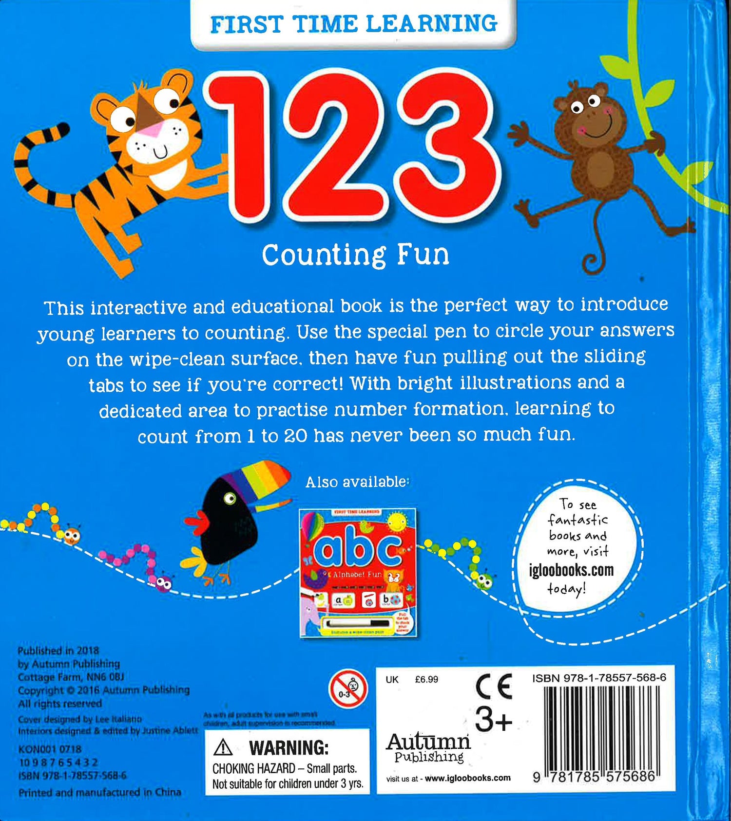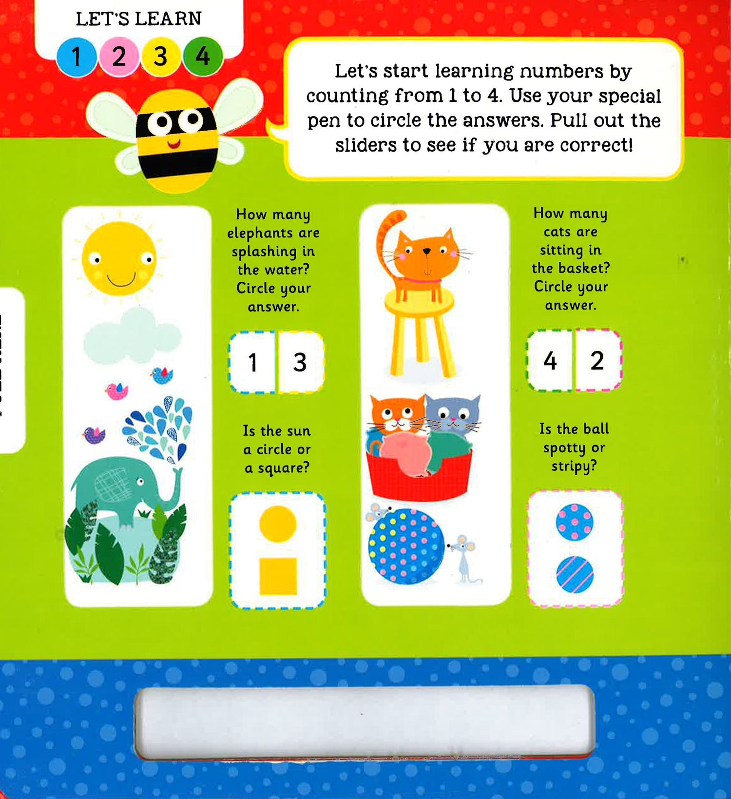 This interactive and educational book is the perfect way to introduce young learners to counting. Use the special pen to circle your answers on the wipe-clean- surface, then have fun pulling out the sliding tabs to see if you're correct! With bright illustrations and a dedicated area to practise number formation. Learning to count from 1 to 20 has never been so much fun.