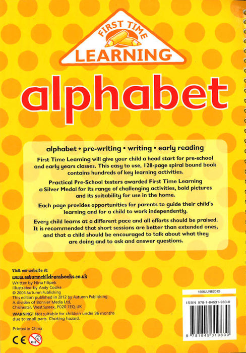 First Time Learning will give your child a head start for pre-school and early years classes. This easy to use, 128-page spiral bound book contains hundreds of key learning activities.