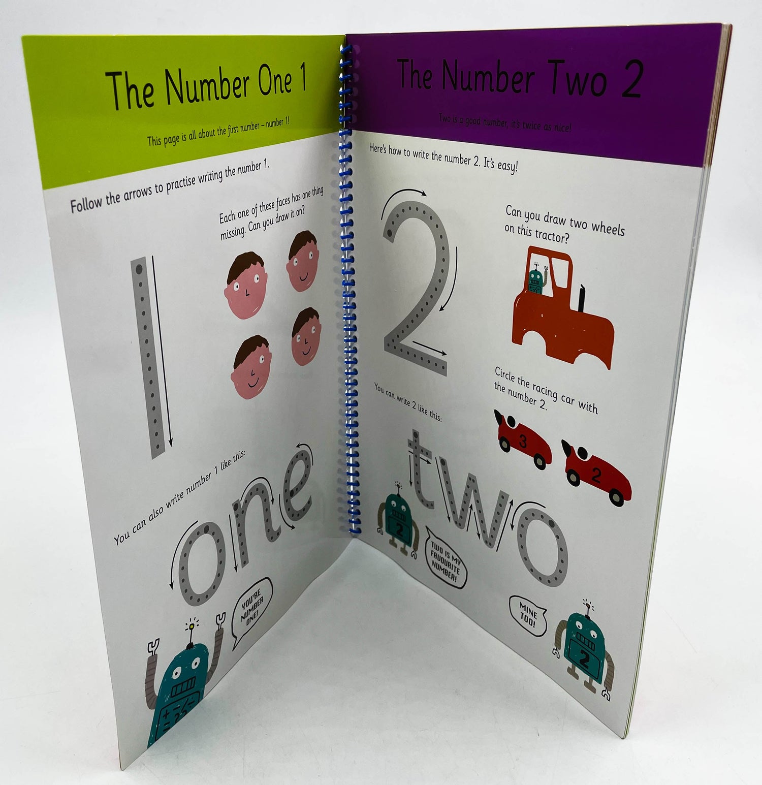 Here's a simple solution to the introduction of letter and number formation. Bright, bold illustration makes learning fun and easy for pre-schoolers who want to get ready for reception. Simple instruction, minimal text, colourful images and easy-to-follow activities build confidence and allow clear demonstration of progression. Wipe-off pages mean kids can practise again and again, learning numbers to 10 and lower case letter writing skills. So get back to basics with these early introductions to writing So get back to basics with these early introductions to writing skills. Wire stitched, wipe-clean book and pen AGES: 3+ SELLING POINTS: Includes wipe-clean pen in blister. Write-on, wipe-off pages encourage repeat attempts and help to refine motor skills. Big, bold graphics keep kids engaged. Promotes number and letter recognition. Learning symbols used to identify key skills. Helpful hints for parents.