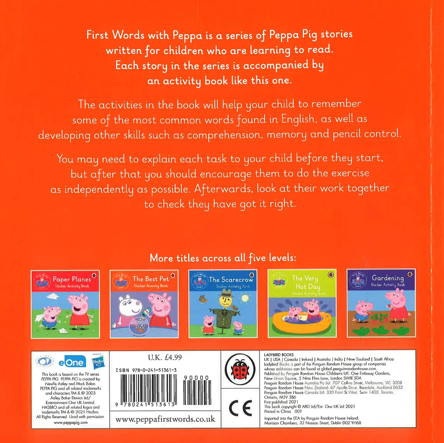 First Words with Peppa is a series of Peppa Pig stories written for children who are learning to read. Each story in the series is accompanied by an activity book like this one.