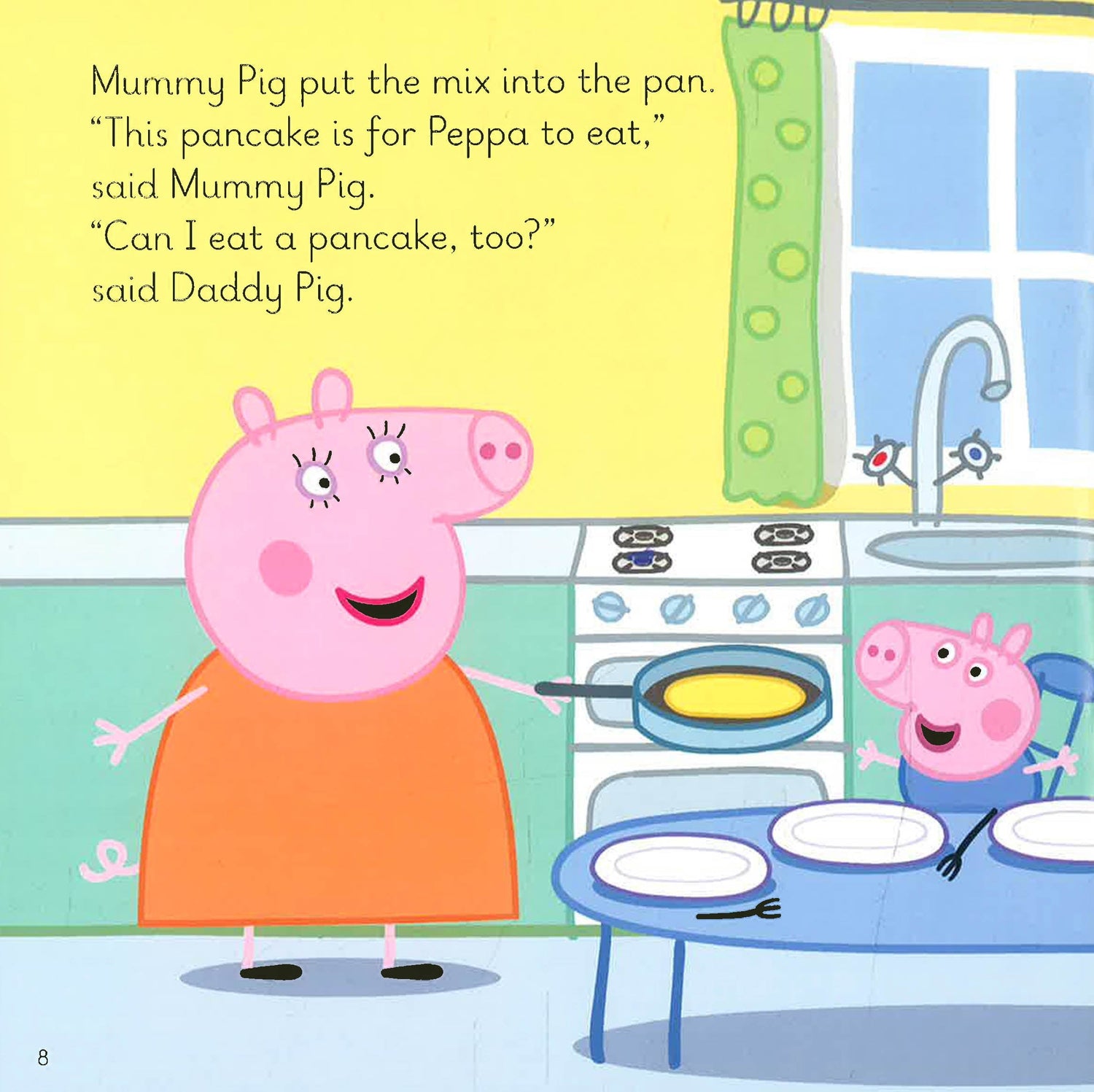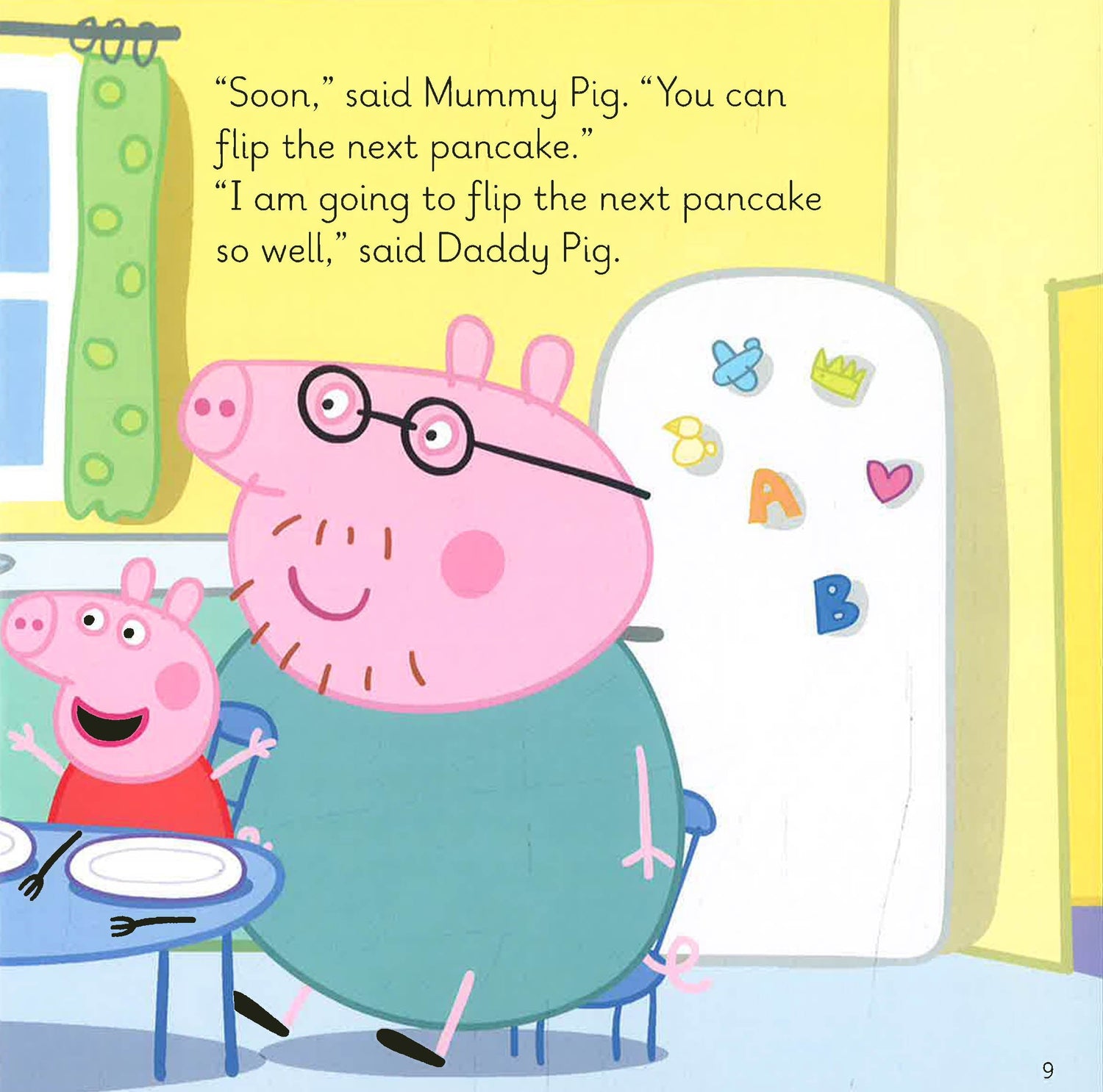 Mummy Pig is making pancakes, but Daddy Pig thinks he can flip them even higher!