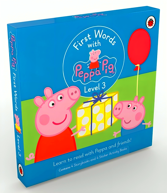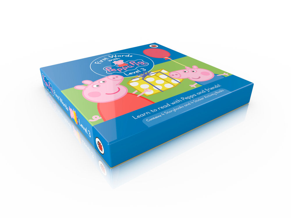 Learn to read with Peppa and friends!First Words with Peppa is a levelled reading series of Peppa Pig stories for children who are learning to read. The series is based on the Dolch Sight Words list; a list of the 220 most common words found in children's English-language reading material.The five levels of First Words with Peppa are suitable for children aged 4-6, or younger if supported by an adult. This Level 1 Box Set includes four Storybooks and four Sticker Activity Books.With helpful reading tips for parents, games to encourage repetition, and audio available for all of the stories, First Words with Peppa is a fun way for children to learn to read.Each Storybook features a story from the well-loved Peppa Pig TV episodes, retold to introduce around ten Sight Words. These words are repeated regularly throughout the story. It is through this repetition that children become familiar with the words and begin to recognise them.Any words in the story that aren't Sight Words, character names or important nouns, are phonically decodable so that children can use their phonics knowledge to read these extra words.Included in this box:The four stories in First Words with Peppa Level 3 are: Captain Daddy Pig, Mummy Pig's Birthday, The Castle, and The Scarecrow.They introduce the following Sight Words: after, again, an, any, ask, as, by, could, every, fly, from, give, going, had, has, her, him, his, how, just, know, let, live, may, of, old, once, open, over, put, round, some, stop, take, thank, them, then, think, walk, were, and when.