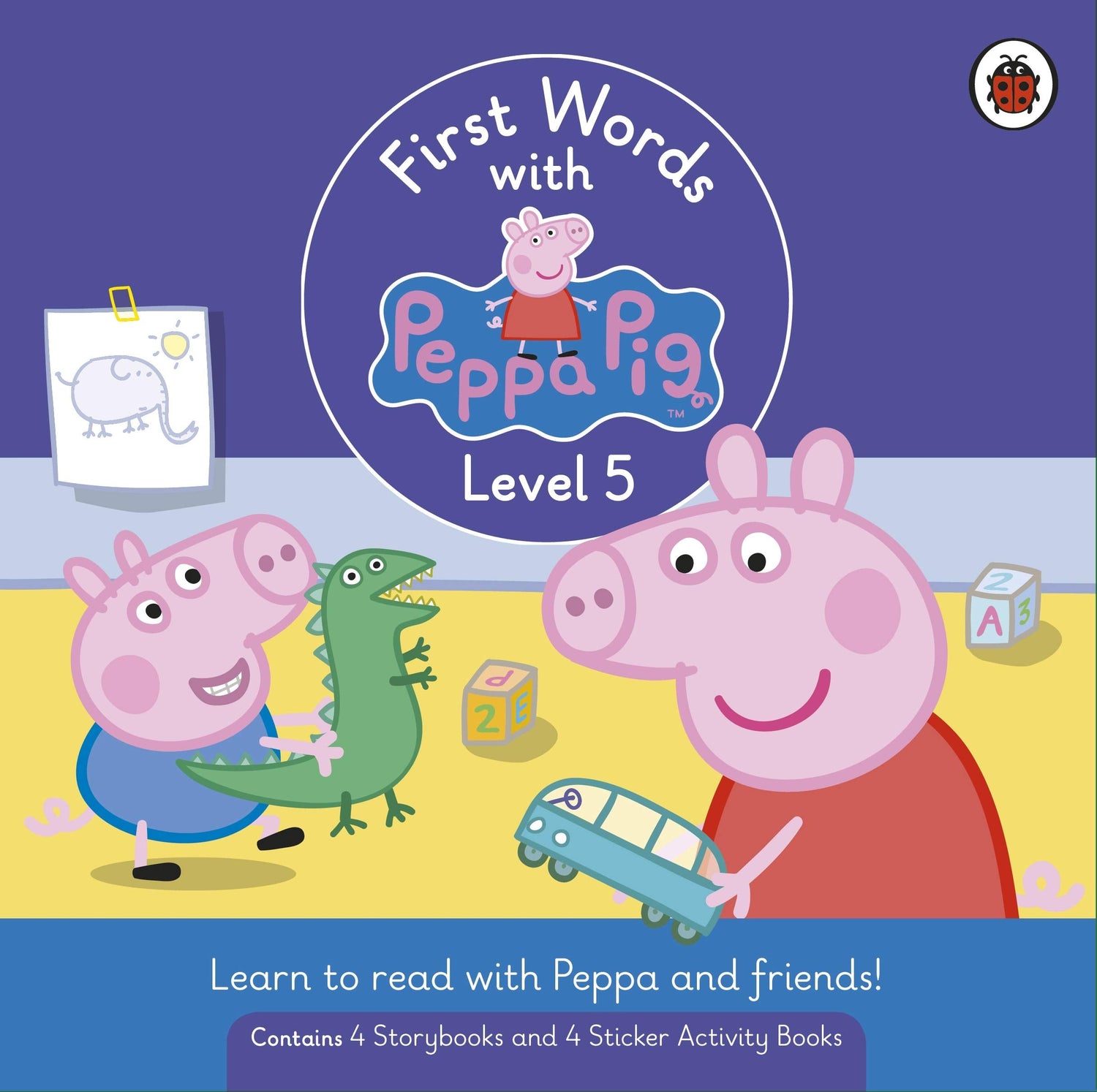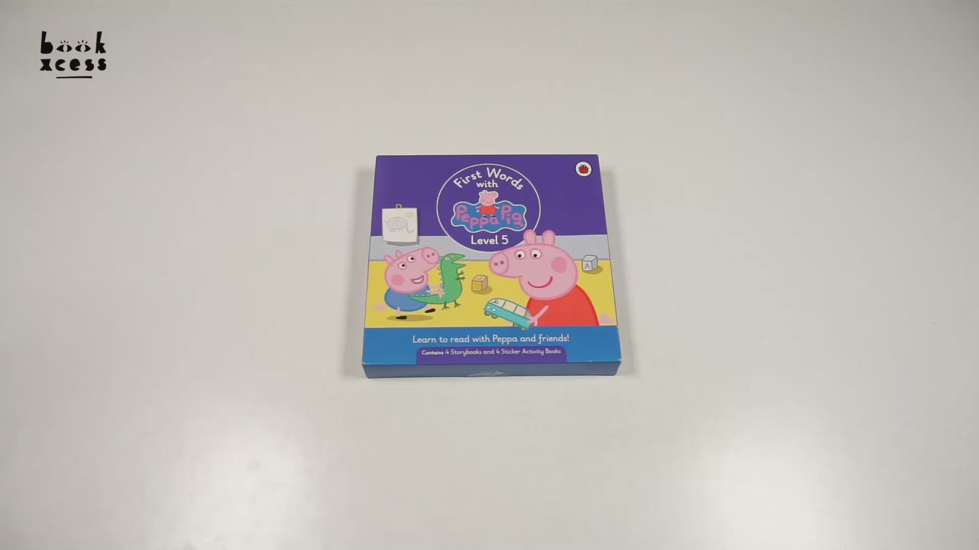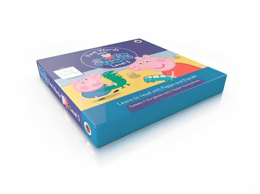 Learn to read with Peppa and friends!First Words with Peppa is a levelled reading series of Peppa Pig stories for children who are learning to read. The series is based on the Dolch Sight Words list; a list of the 220 most common words found in children's English-language reading material.The five levels of First Words with Peppa are suitable for children aged 4-6, or younger if supported by an adult. This Level 1 Box Set includes four Storybooks and four Sticker Activity Books.With helpful reading tips for parents, games to encourage repetition, and audio available for all of the stories, First Words with Peppa is a fun way for children to learn to read.Each Storybook features a story from the well-loved Peppa Pig TV episodes, retold to introduce around ten Sight Words. These words are repeated regularly throughout the story. It is through this repetition that children become familiar with the words and begin to recognise them.Any words in the story that aren't Sight Words, character names or important nouns, are phonically decodable so that children can use their phonics knowledge to read these extra words.Included in this box:The four stories in First Words with Peppa Level 5 are: Daddy Pig Gets Fit, Gardening, The Thunderstorm, and Tidying Up.They introduce the following Sight Words: about, better, bring, carry, clean, cut, done, draw, drink, eight, fall, far, full, got, grow, hold, hot, hurt, if, keep, kind, laugh, light, long, much, myself, never, nine, only, own, pick, seven, shall, show, small, start, ten, today, together, try, and warm.