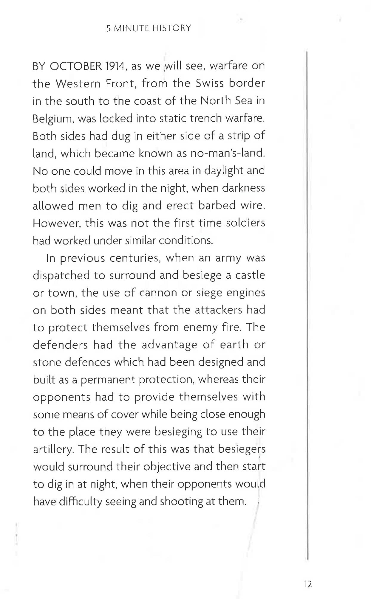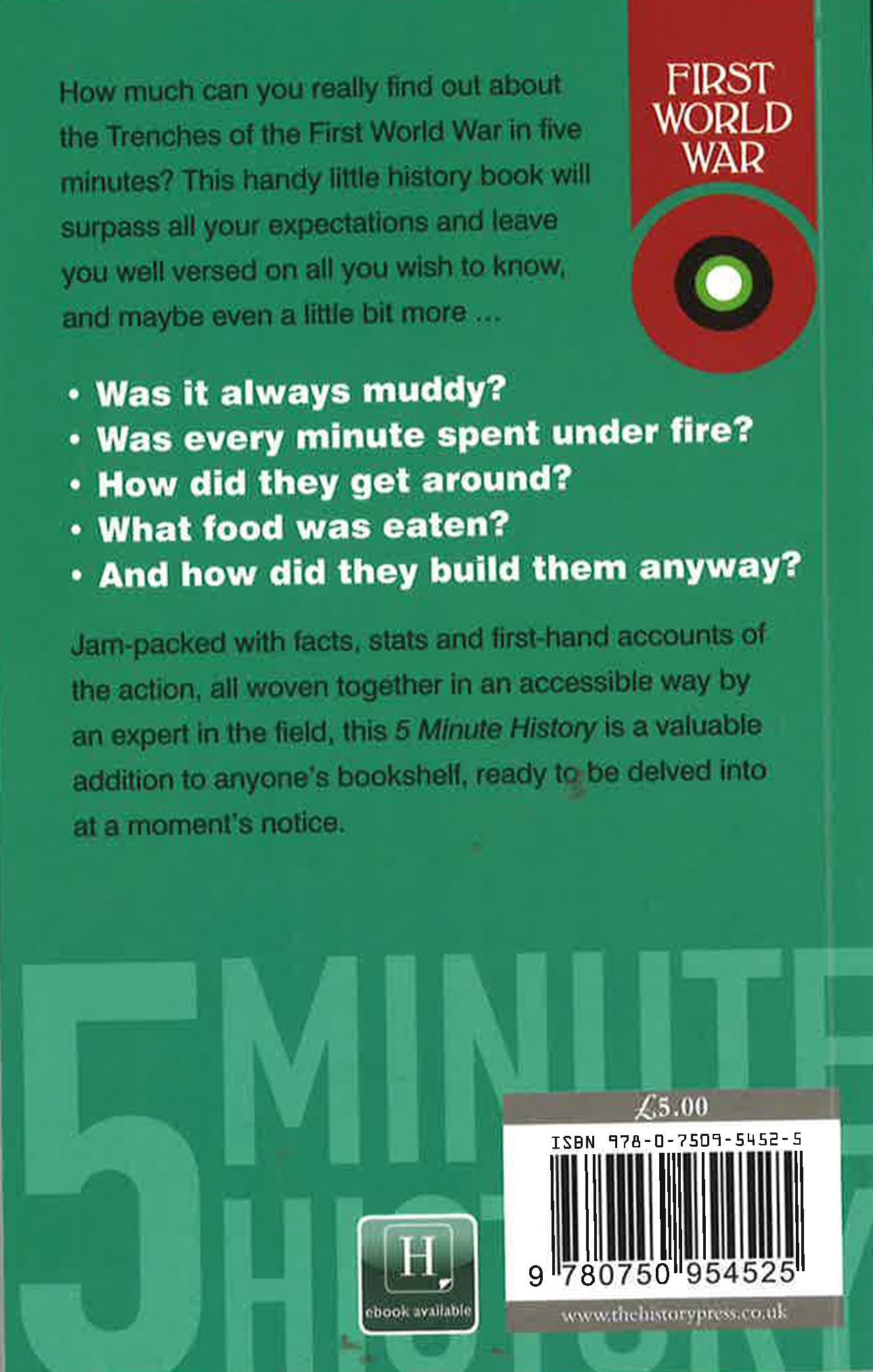 How much can you really find out about the Trenches of the First World War in five minutes? This handy little history book will surpass all your expectations and leave you well versed on all you wish to know, and maybe even a little bit more... Was it always muddy? Was every minute spent under fire? How did they get around? What food was eaten? And how did they build them anyway? Jam-packed with facts, stats and first-hand accounts of the action, all woven together in an accessible way by an expert in the field, this 5 Minute History is a valuable addition to anyone's bookshelf, ready to be delved into at a moment's notice.