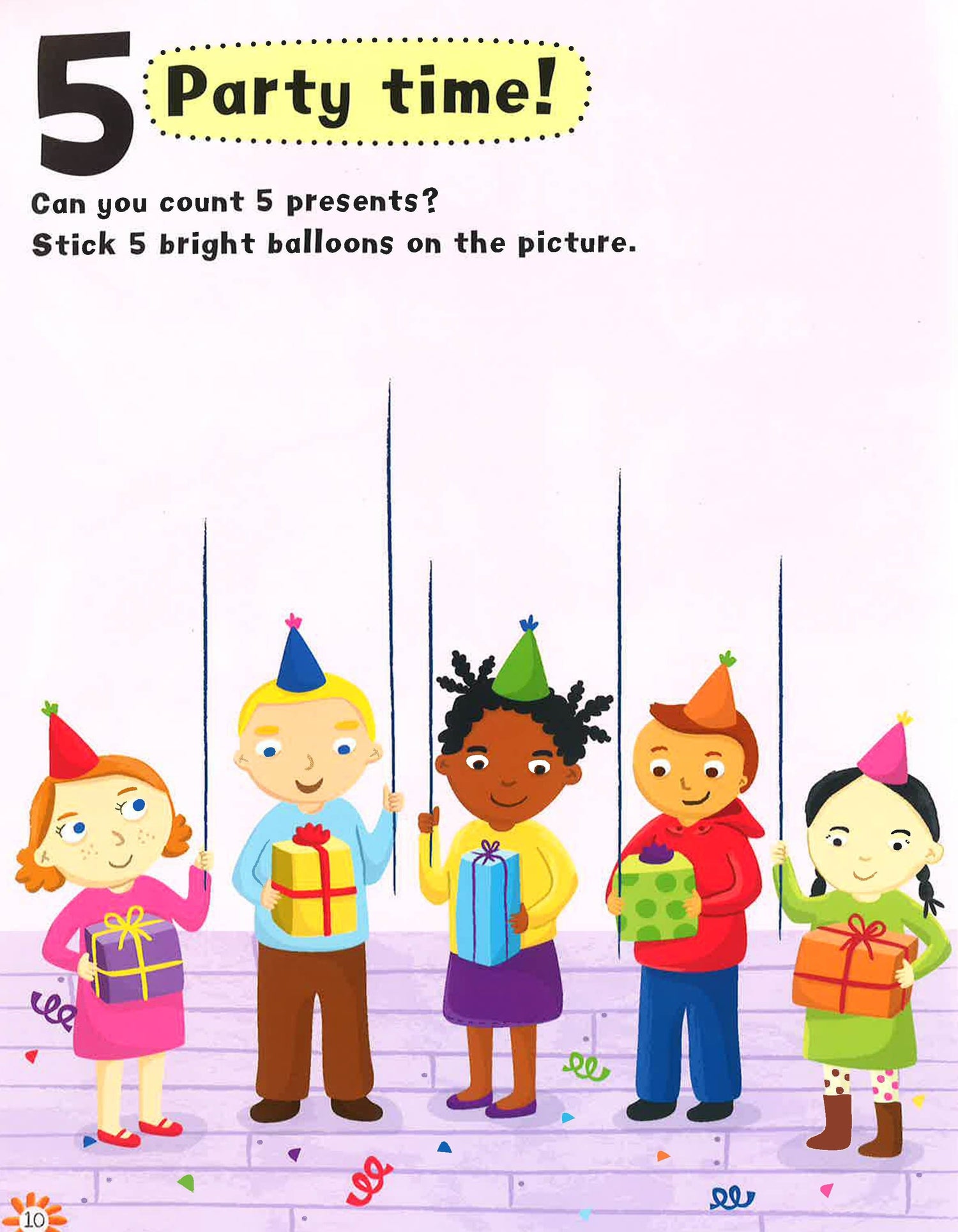This bright, appealing activity book is specially created for children aged 3+ to help develop early numeracy skills, for recognising numbers one to ten and counting up to ten. Packed with fun and accessible counting activities and sticker scenes to complete, this sticker activity book is perfect for developing pre-school children's confidence with numbers.