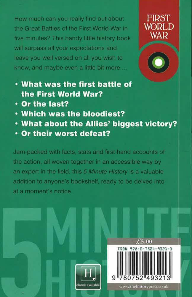 How much can you really find out about the Great Battles of the First World War in five minutes? This handy little history book will surpass all your expectations and leave you well versed on all you wish to know, and maybe even a little bit more...