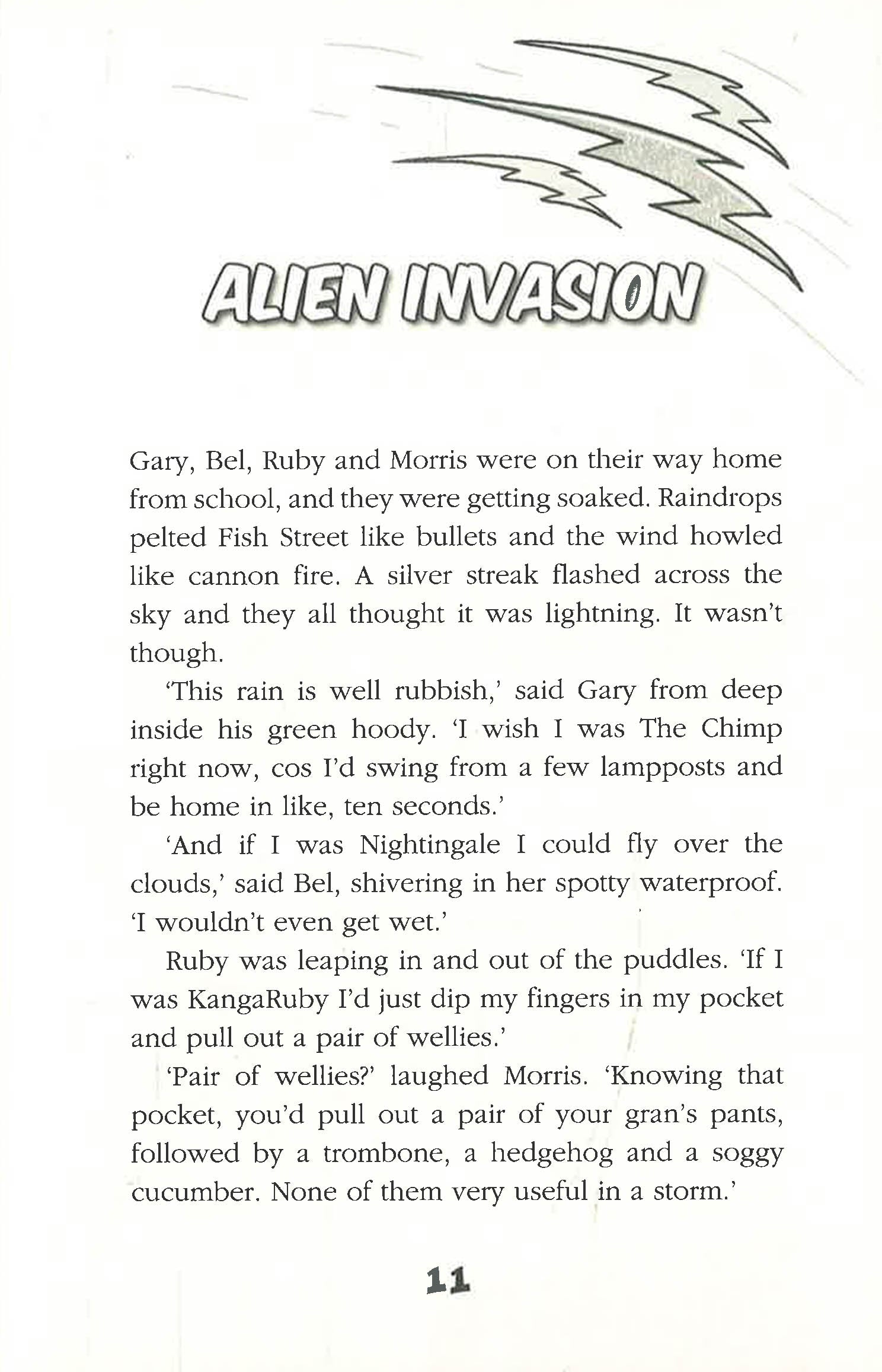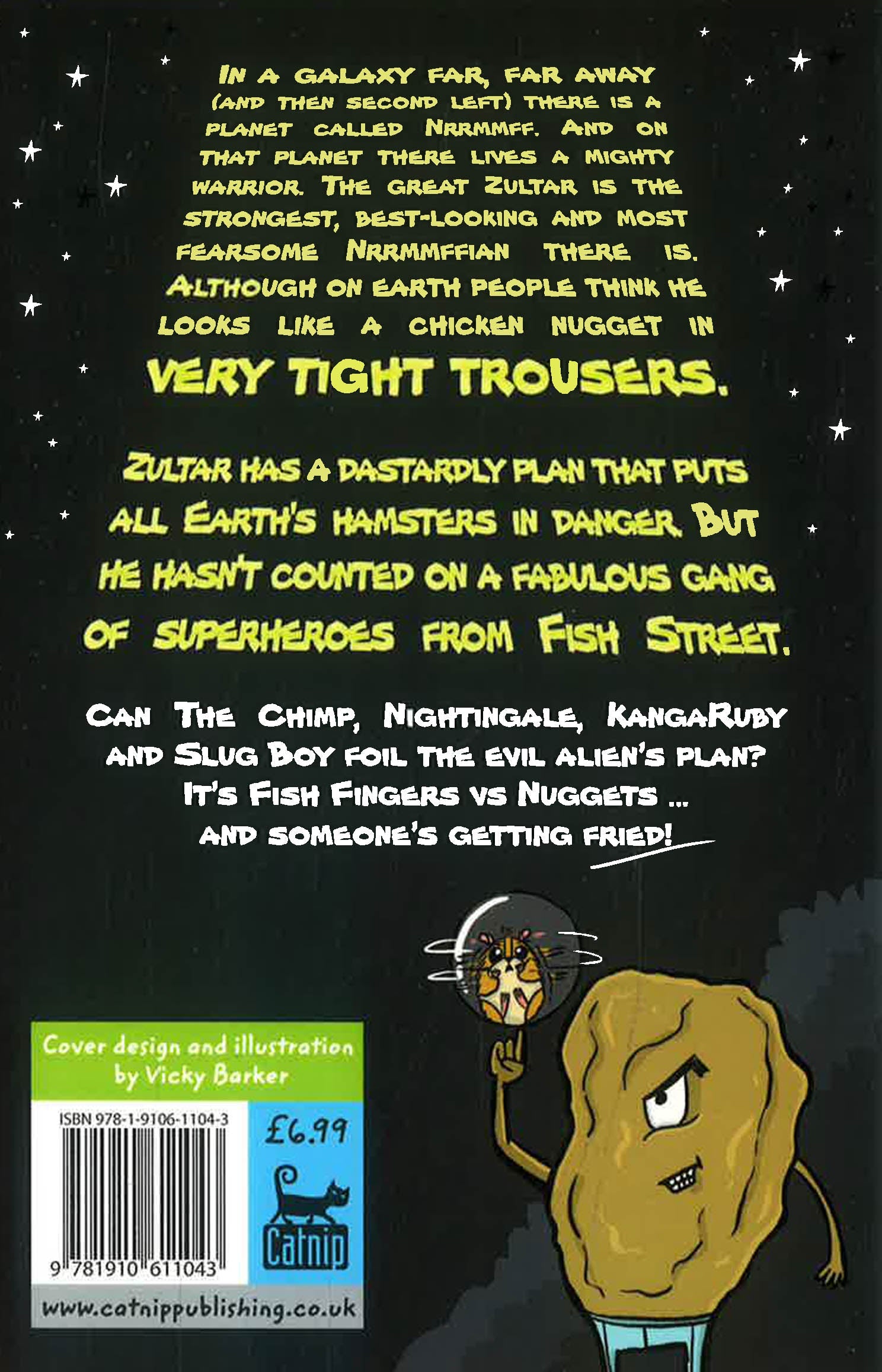 A funny, silly tale about a great alien warrior who comes to Earth to enact an evil plan, but who doesn't realise that he looks like a chicken nugget. The latest in the "Fish Fingers" series of silly villains and loveable heroes. Ages: 7+