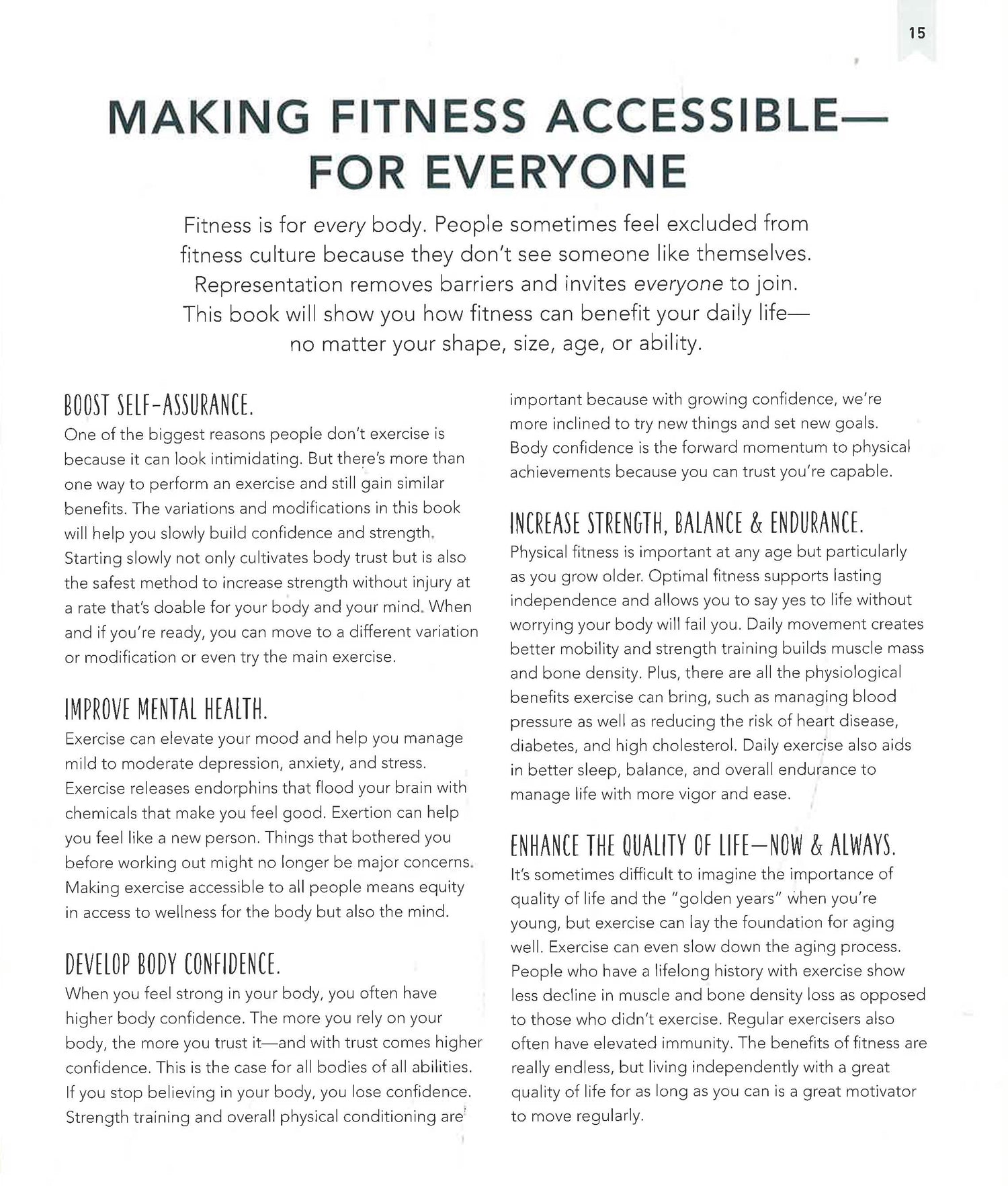 Whether you've been working out for years or you're just getting started, you'll find something new, challenging, and exciting throughout the pages of this self-help book. The exercises included have variations for people of all body types and abilities. From pushups and burpees to planking and tricep dips, you'll soon start saying, "I can do every exercise in this book!"