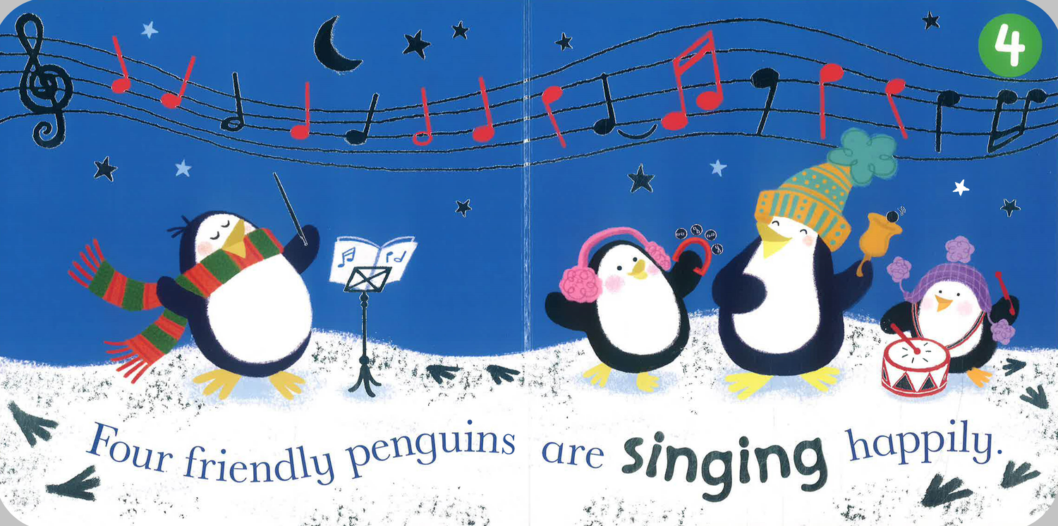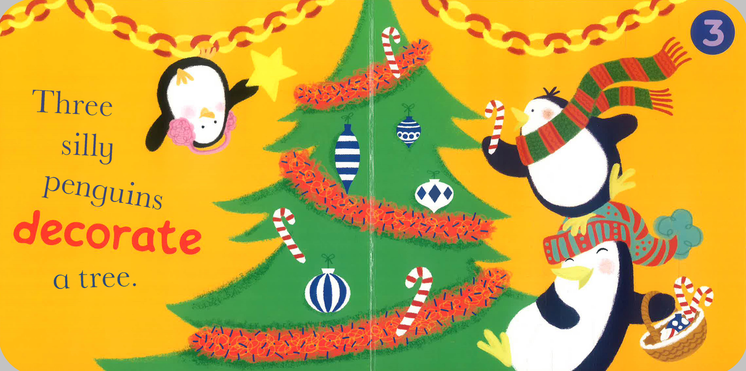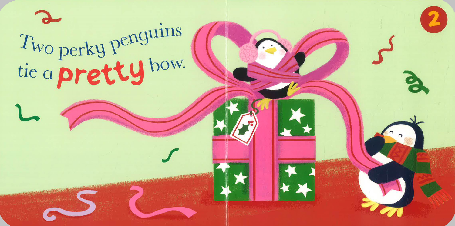 Get ready for some counting fun with five spunky penguins as they prepare for the best Christmas party ever! Whether zooming through the snow, decorating the tree, wrapping presents or singing, artist Steven Lenton’s adorable, playful penguins will get kids in the holiday spirit and help them improve their counting skills! Perfect for holiday gifts, Five Christmas Penguins features a foil and embossed cover treatment with shiny foil throughout.