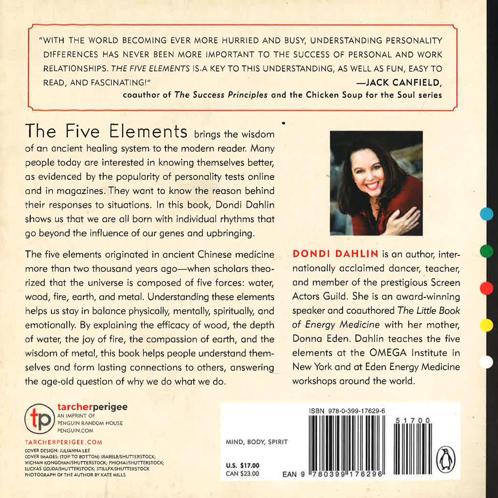 Dondi Dahlin shows us that we are all born with individual rhythms that go beyond the influence of our genes and upbringing. The five elements originated in ancient Chinese medicine over 2,000 years ago--when scholars theorized that the universe is composed of five forces: water, wood, fire, earth, and metal. Understanding these elements helps us stay in balance physically, mentally, spiritually, and emotionally. By explaining the efficacy of wood, the depth of water, the joy of fire, the compassion of earth, and the wisdom of metal, this book helps people understand themselves and form lasting connections to others, answering the age-old question of why we do what we do.