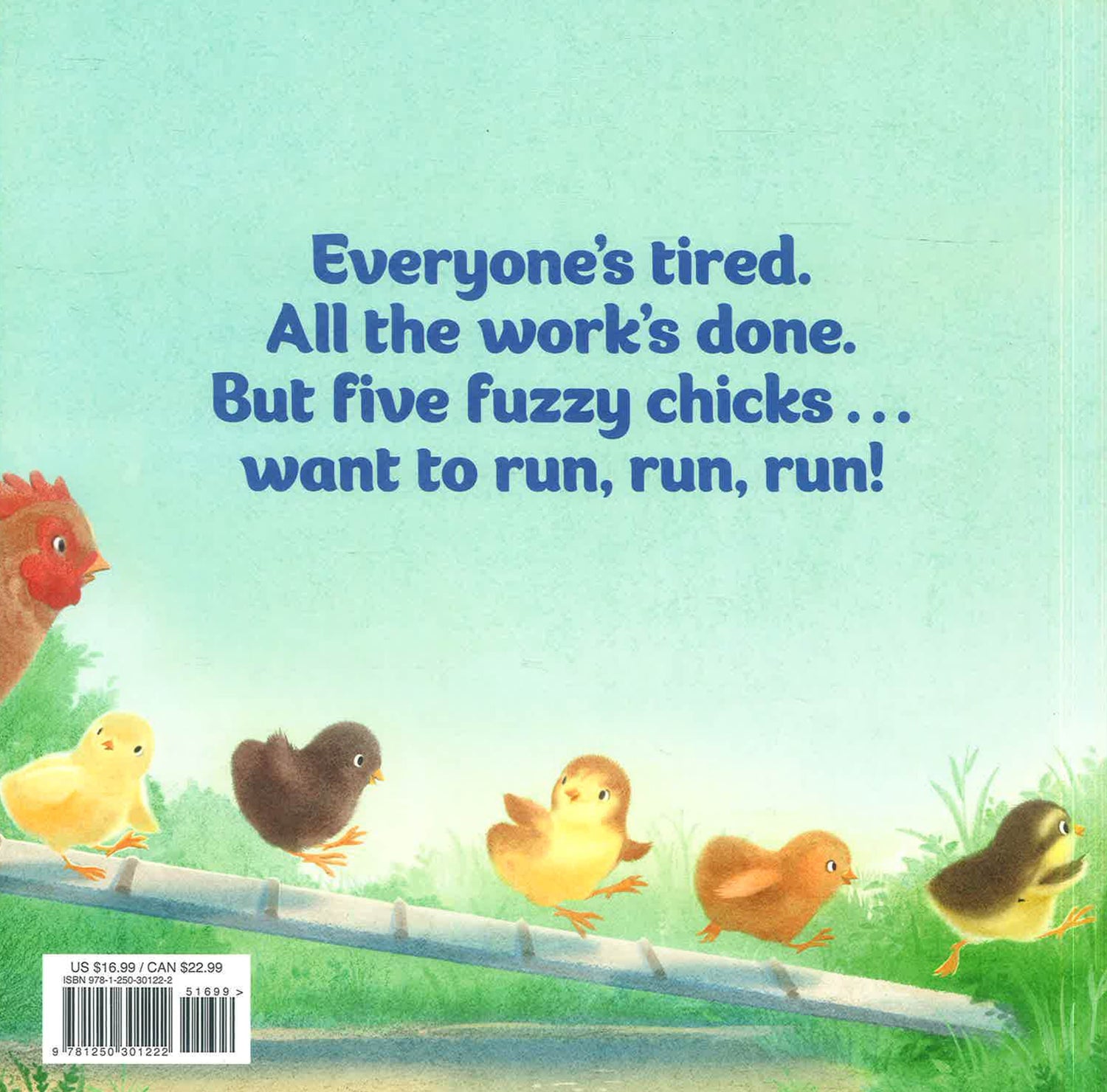 Five adorable baby chickens are determined to have some fun before bed in Five Fuzzy Chicks by Diana Murray, a rhyming farm picture book with counting elements featuring illustrations by Sydney Hanson.
