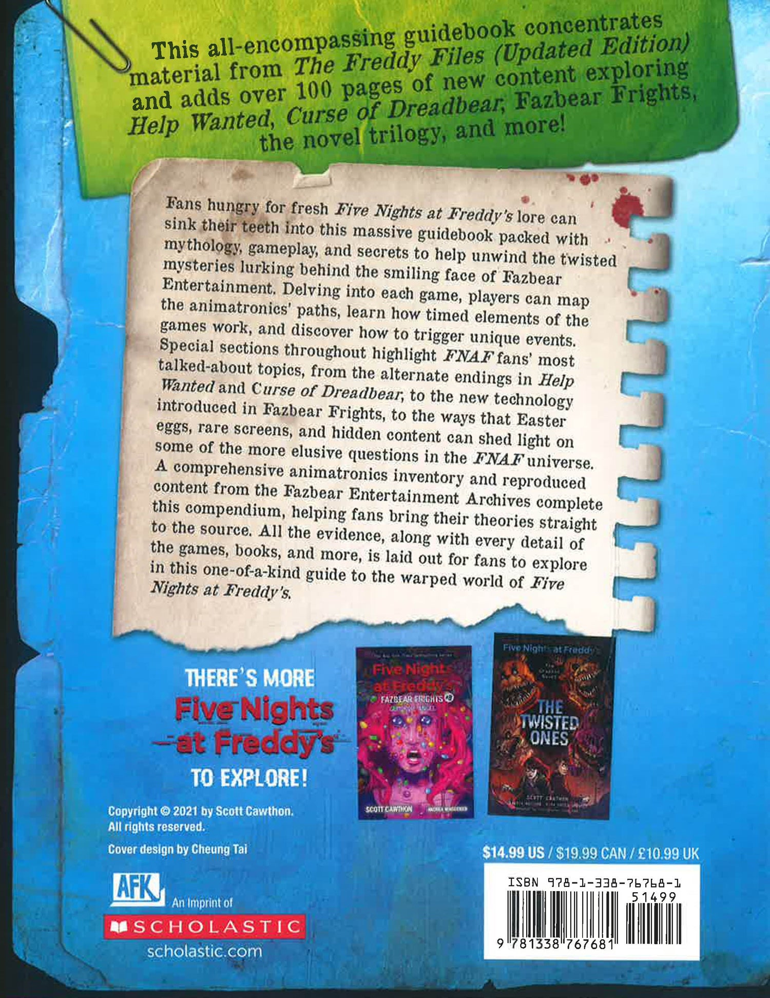 Fans won't want to miss this ultimate guide to Five Nights at Freddy’s – bursting with theories, lore, and insights from the games, books and more! This all-encompassing guidebook concentrates material from The Freddy Files (Updated Edition) and adds over 100 pages of new content exploring Help Wanted, Curse of Dreadbear, Fazbear Frights, the novel trilogy, and more! Fans hungry for fresh Five Nights at Freddy's lore can sink their teeth into this massive guidebook packed with mythology, gameplay and secrets to help unwind the twisted mysteries lurking behind the smiling face of Fazbear Entertainment. Delving into each game, players can map the animatronics' paths, learn how timed elements of the games work, and discover how to trigger unique events. Special sections throughout highlight FNAF fans' most talked-about topics, from the alternate endings in Help Wanted and Curse of Dreadbear, to the new technology introduced in Fazbear Frights, to the ways that Easter eggs, rare screens, and hidden content can shed light on some of the more elusive questions in the FNAF universe. A comprehensive animatronics inventory and reproduced content from the Fazbear Entertainment Archives complete this compendium, helping fans bring their theories straight to the source. All the evidence, along with every detail of the games, books and more, is laid out for fans to explore in this one-of-a-kind guide to the warped world of Five Nights at Freddy's. Over 100 pages of new content The ultimate guide, full of gameplay, secrets and mythology Perfect for gamers and fans of horror.