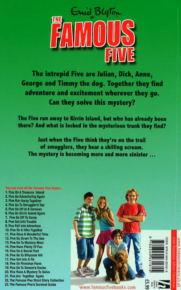 Enid Blyton's The Famous Five find adventure wherever they go. Julian, Dick, Anne, George and Timmy the dog always have a mystery to solve! Julian, Dick, Anne, George and Timmy the dog find excitement and adventure wherever they go in Enid Blyton's most popular series.In their third adventure, the Famous Five discover that someone has been on George's island. And what is locked in the mysterious trunk hidden on Kirrin Island? The Famous Five think they're on the trail of smugglers - until they hear a child scream...The text in this edition has been sensitively edited for today's reader and is unillustrated.