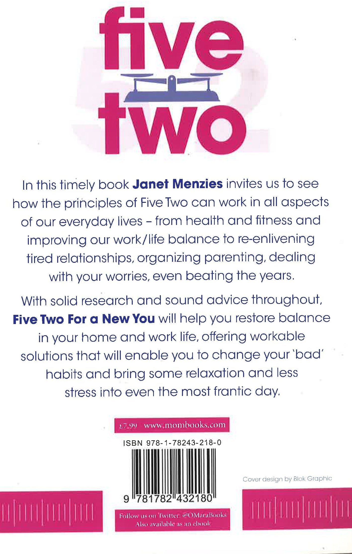 The 5:2 diet method, in which dieters fast for two days and eat normally for the other five, took the world by storm and has blown a breath of fresh air through the dieting world. But why not apply these principles to other areas of life? In this timely book author Janet Menzies invites us to see how 5:2 can work in all aspects of our everyday lives - from health and fitness and improving our work/life balance to re-enlivening tired relationships, organizing parenting, even beating the years. With solid research and sound advice throughout, 5:2 for a New You will help you restore balance in your home and work life - and bring some relaxation and less stress into even the most frantic day.