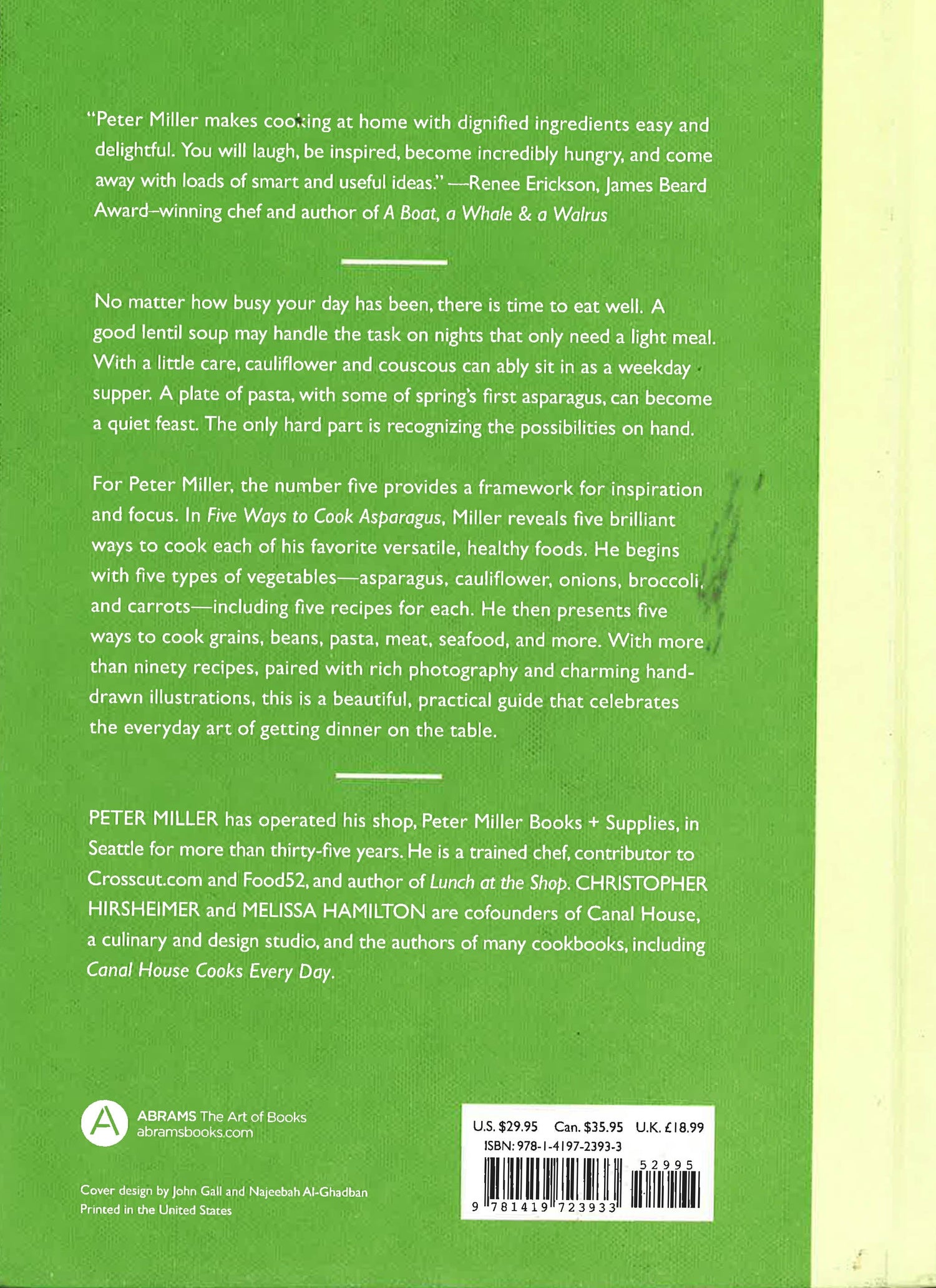 Offering a detailed plan for getting dinner on the table, no matter how busy your day has been, Peter Miller reveals five brilliant ways to cook a group of indispensable ingredients. These versatile, healthy foods - a carefully curated range of vegetables, grains, legumes, pastas, and proteins - form an adaptable toolbox for making simple, delicious meals. With five tried-and-tested methods for a wide range of common ingredients at their fingertips, busy home cooks can quickly focus on how to prepare whatever is on hand and in season.Offering more than 90 recipes, plus menus, tips for giving new life to leftovers, and detailed advice on sourcing ingredients, Five Ways to Cook Asparagus shows you how to cook dinner with only one or two fresh ingredients and be confident that you will eat well.