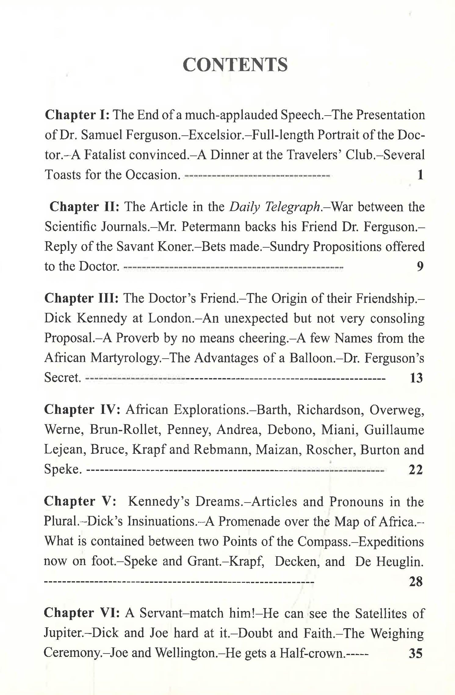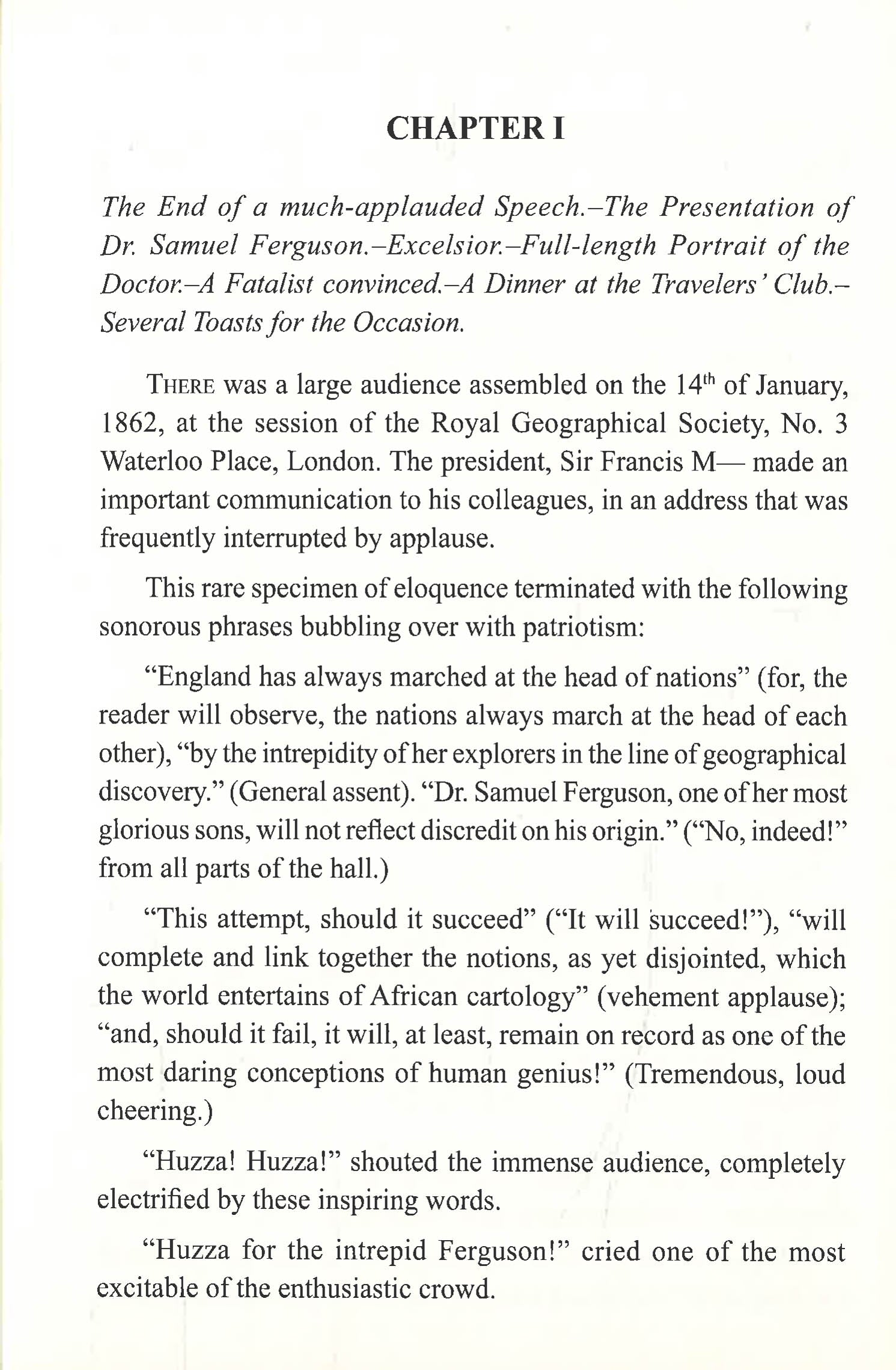 It is the first Verne novel in which he perfected the "ingredients" of his later work, skillfully mixing a plot full of adventure and twists that hold the reader's interest with passages of technical, geographic, and historic description. The book gives readers a glimpse of the exploration of Africa, which was still not completely known to Europeans of the time, with explorers traveling all over the continent in search of its secrets.