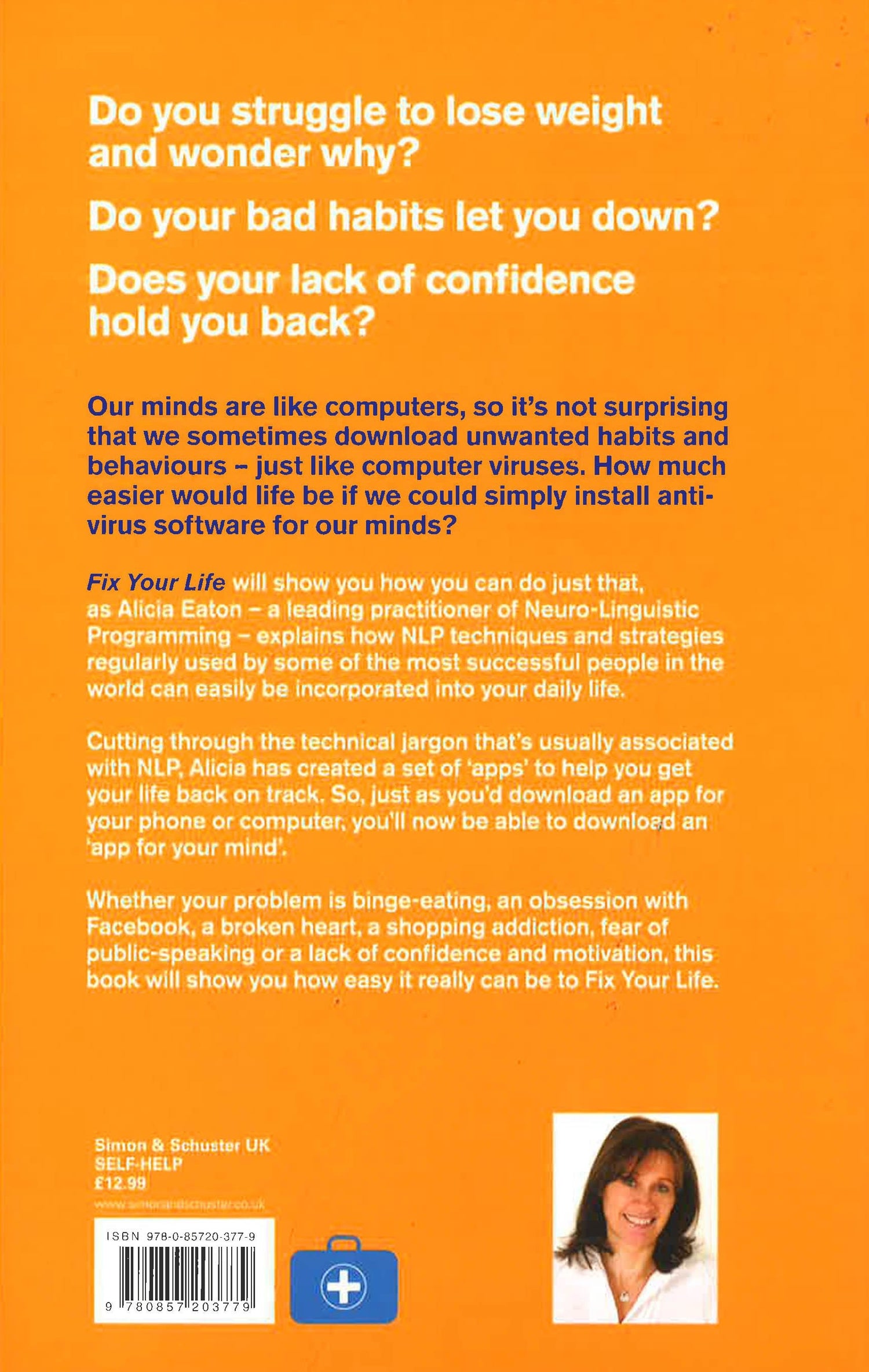 Do you struggle to lose weight and wonder why? Do your bad habits and lack of confidence hold you back? Do you find yourself repeating bad patterns of behavior? Fix Your Lifewill show you how easy it can be to rid yourself of life's irritating problems by using the latest psychological techniques of NLP. This is an ideal introduction to the subject, as the author Alicia Eaton cuts through the technical jargon that's usually associated with NLP and explains how the techniques and strategies used by some of the world's most successful people, can easily be incorporated into your daily life. As well as explaining how our minds work and why it's so easy to fall into bad patterns of behavior, the author presents the NLP techniques as 'Apps for the Mind'. So, just as you'd download an App for your phone or computer to expand its' capabilities, you'll now be able to download an 'App for your Mind' to enable you to achieve more than ever before. Client stories from the author's Harley Street practice demonstrate how to fix fears and phobias such as public-speaking or fear of flying; deal with bad habits such as shopping addiction or Facebook obsessions and even apply your very own hypnotic gastric band to combat overeating. Readers are encouraged to view this book as a 'first aid kit for the mind' that can support them, plus friends and family, for many years.
