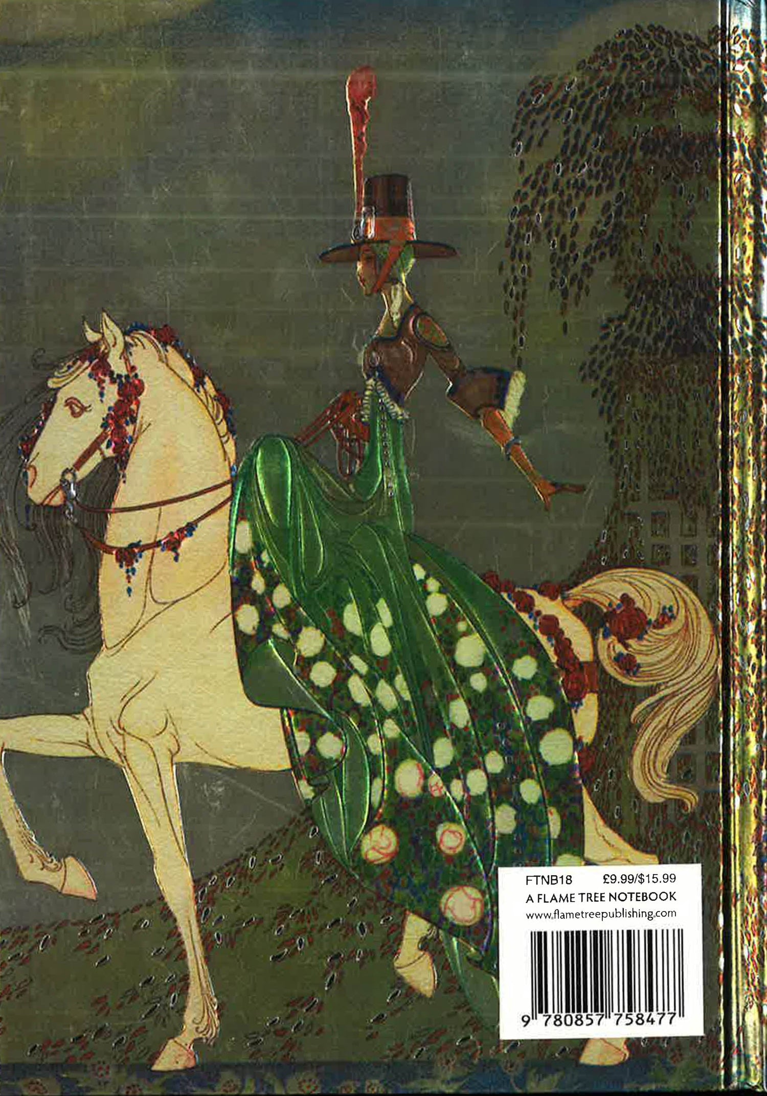 Part of a series of exciting and luxurious Flame Tree Notebooks. Combining high-quality production with magnificent fine art, the covers are printed on foil in five colours, embossed then foil stamped. And they're powerfully practical: a pocket at the back for receipts and scraps, two bookmarks and a solid magnetic side flap. These are perfect for personal use and make a dazzling gift. This example features a stunning art deco fairytale illustration by Kay Nielsen. This is one of Danish illustrator Kay Nielsen's illustrations for the fairy tale Minon-Minette. Prince Souci fell in love with a beautiful and kind-hearted princess called Minon-Minette, and was desperate to win her love. Yet finding himself one day by chance in the Iron King's territory, Souci was captured and caged, nearly despairing of escape. When Minon-Minette discovered Souci's fate, she prepared to bring war to the Iron King's gates, and rode out into the world to seek her prince.