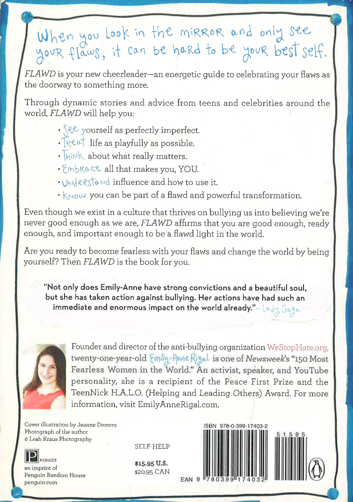 When you look in the mirror and only see your flaws, it can be hard to be your best self. "" "FLAWD "is your new cheerleader an energetic guide to seeing your flaws as the doorway to something more. Through dynamic stories and advice from teens and celebrities around the world, "FLAWD" will help you to: . SEE yourself as perfectly imperfect. . TREAT life as playfully as possible. . THINK about what really matters. . EMBRACE all that makes you, YOU. . UNDERSTAND influence and how to use it. . KNOW you can be part of a flawd and powerful transformation. Even though we exist in a culture that thrives on bullying us into believing we're never good enough as we are, "FLAWD" affirms that you are good enough, ready enough and important enough to be a flawd light in the world. Are you ready to become fearless with your flaws and change the world by being yourself? Then "FLAWD" is the book for you. * This book may have reminder mark*