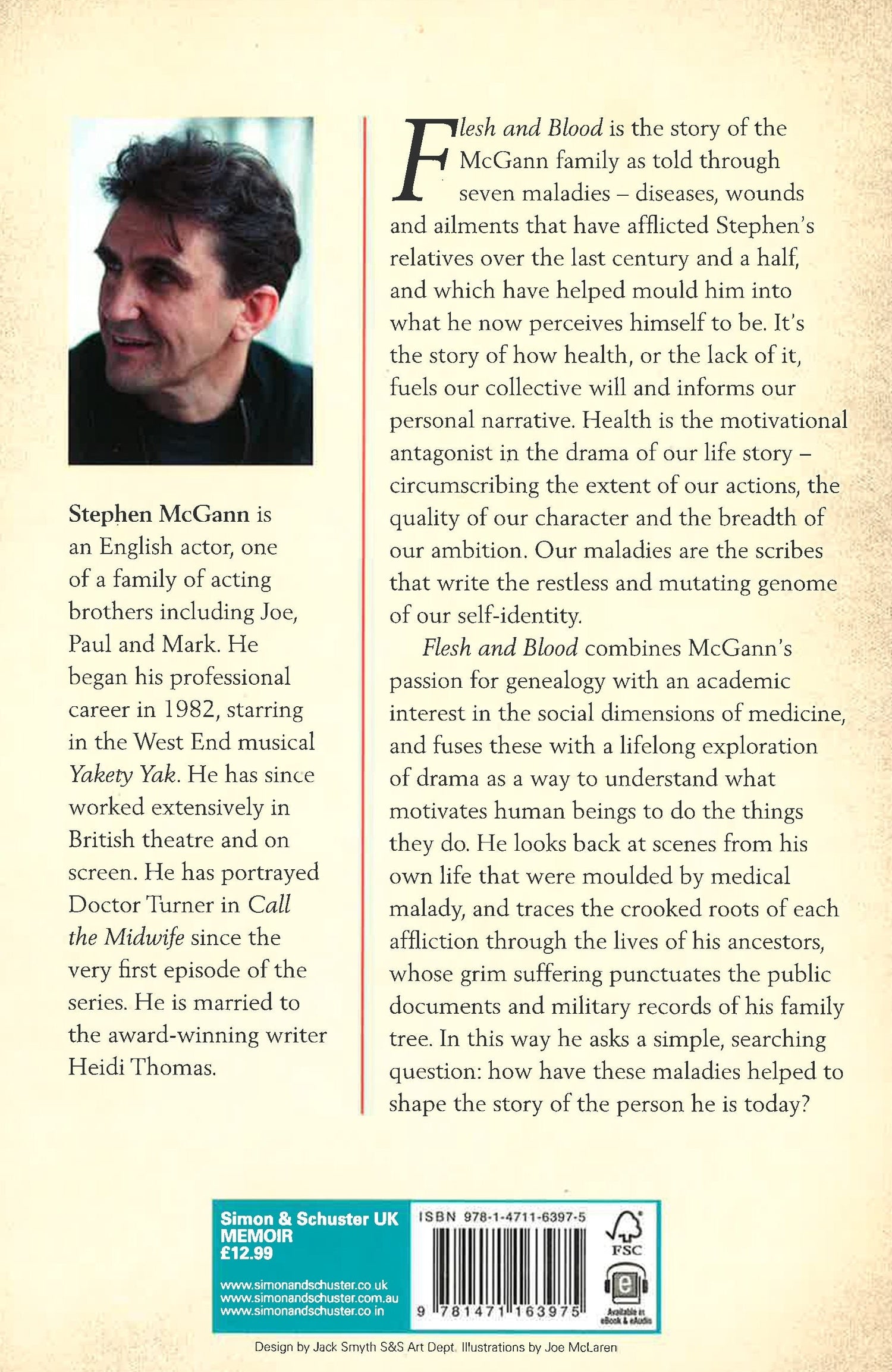 Flesh and Blood combines McGann's passion for genealogy with an academic interest in the social dimensions of medicine - and fuses these with a lifelong exploration of drama as a way to understand what motivates human beings to do the things they do. He looks back at scenes from his own life that were moulded by medical malady, and traces the crooked roots of each affliction through the lives of his ancestors, whose grim maladies punctuate the public documents or military records of his family tree. In this way he asks a simple, searching question: how have these maladies helped to shape the story of the person he is today?